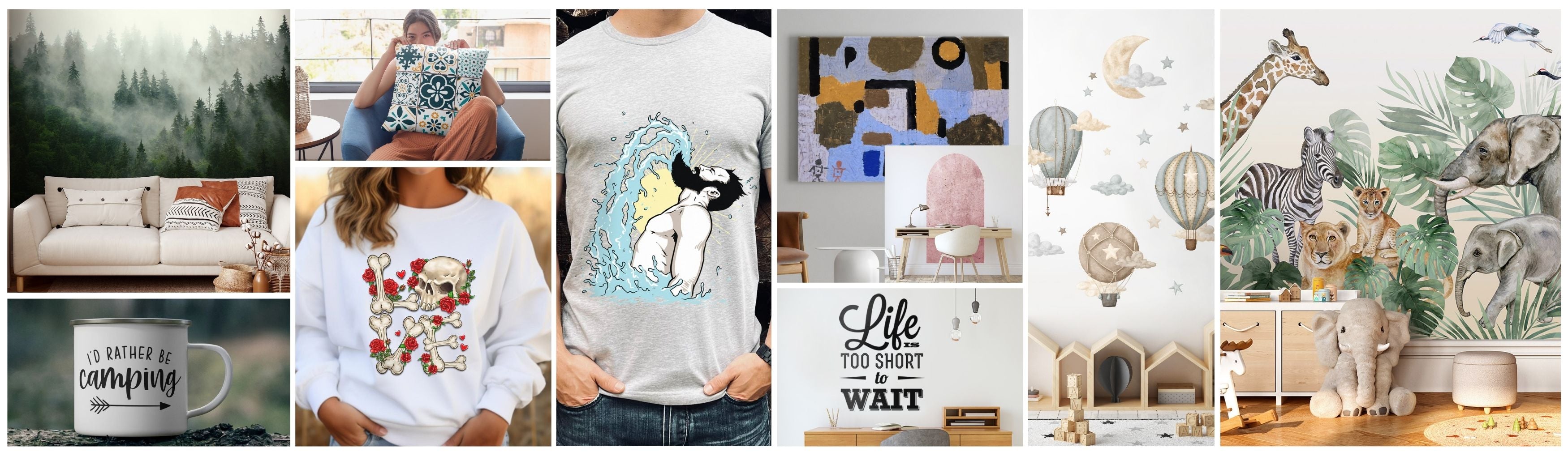 We offer a wide range of products to enhance your home and add a personal touch to your life. Explore our collection of wall decor items wall decals, wallpapers, shirts and apparel, mugs, wall art, pillows and more. From transforming your walls to expressing your style, we have everything you need to create a unique and cozy space. Shop with us today and elevate your decor with our high-quality and customizable products. We will be happy to assist you for any question or queries.