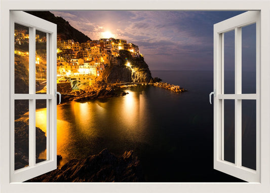 Island Night View Wall Decal, 3d Window Wall Decal, Island Wall Decal, Window Frame, Window View Wall Mural, Living Room Home Wall Decor