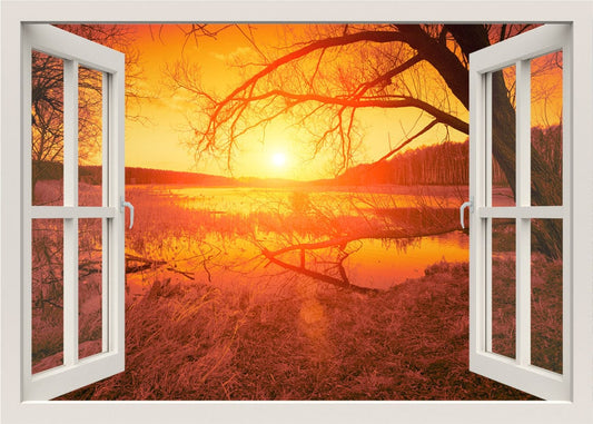 Sunset Wall Decal Mural, Sunset Mural, Lake Wall Decal, Nature Wall Sticker, 3d Window View Wall Decal, Living Room Bedroom Home Decor