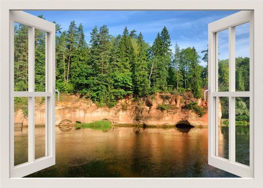 Lake and Trees Wall Decal, Lake and Trees Wall Sticker, Forest Wall Decal,3d Window View Wall Mural, Window Frame Nature Wall Sticker