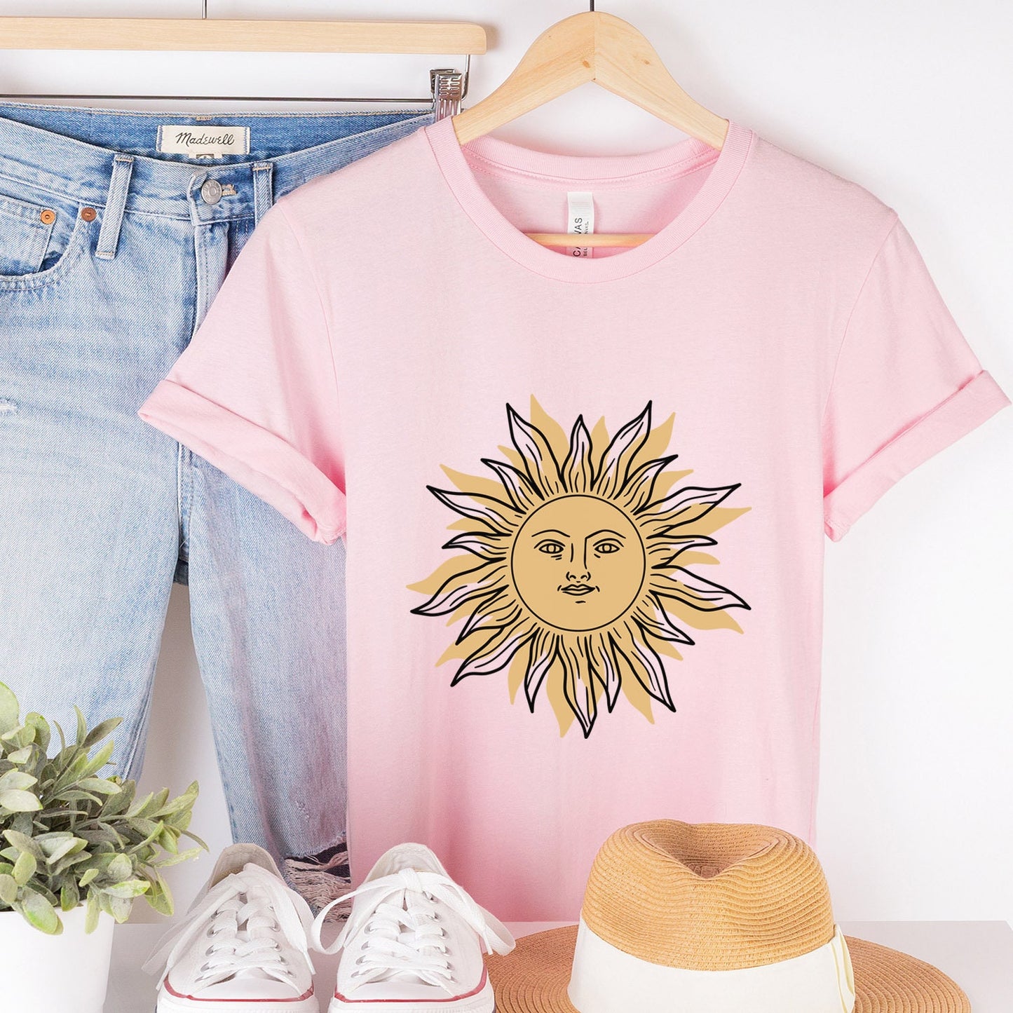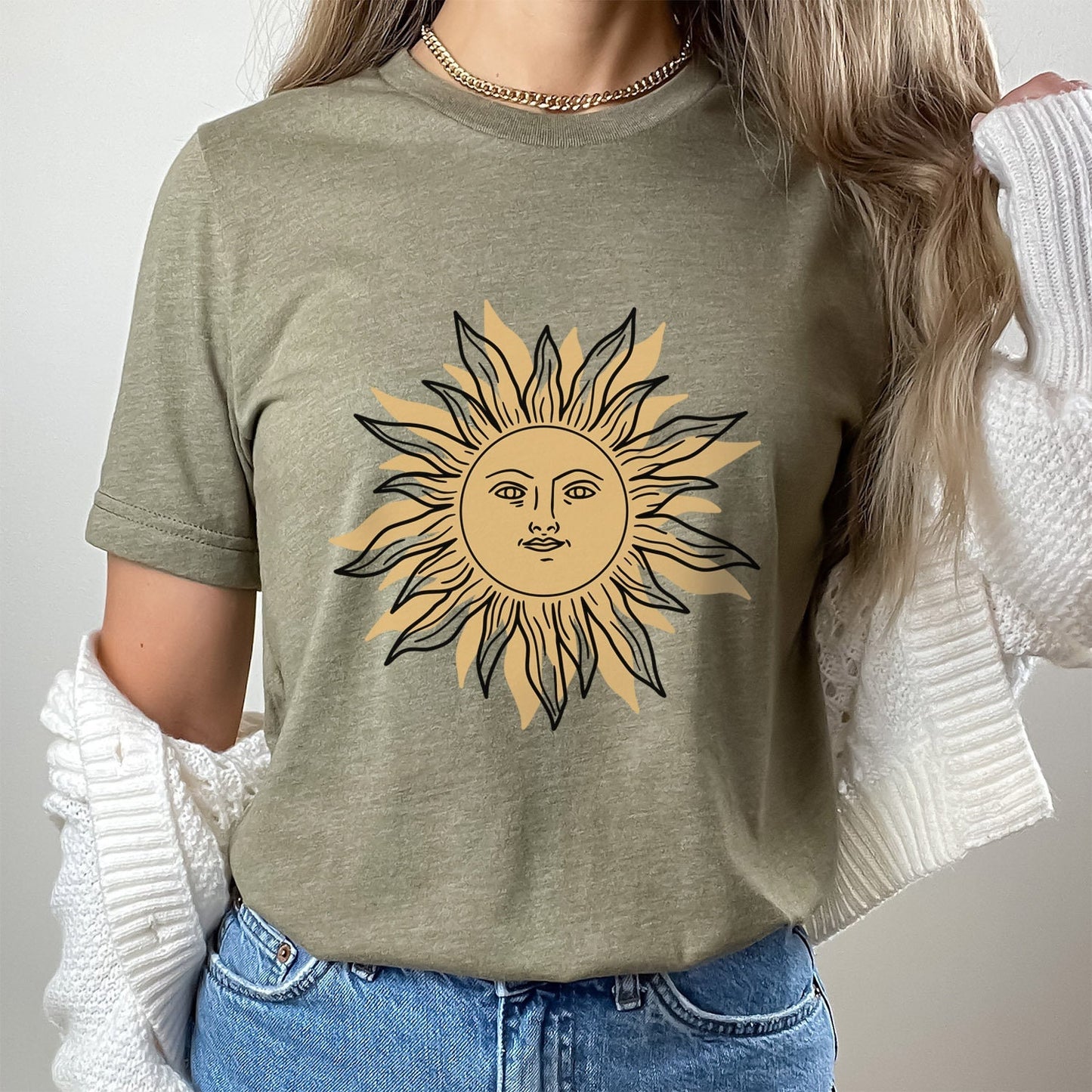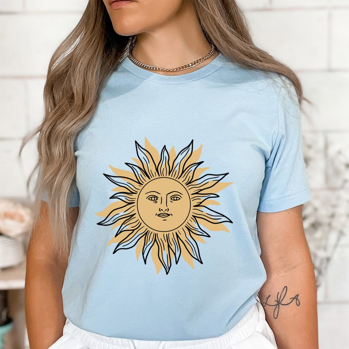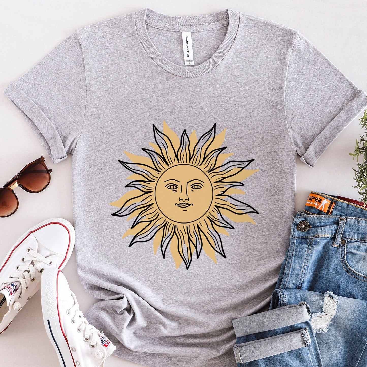 Sonnengesicht T-Shirt, Mystisches Shirt, Boho T-Shirt, Solar T-Shirt, Mond und Sterne T-Shirt, Boho T-Shirt, Astrologisches Shirt, Geschenk für Sie