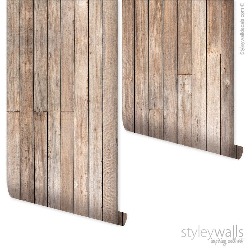 Brown Wood Wallpaper, Wood Pattern Wallpaper, Vitange Wood Wallpaper, Self Adhesive, Repositionable Peel and Stick, Removable Fabric