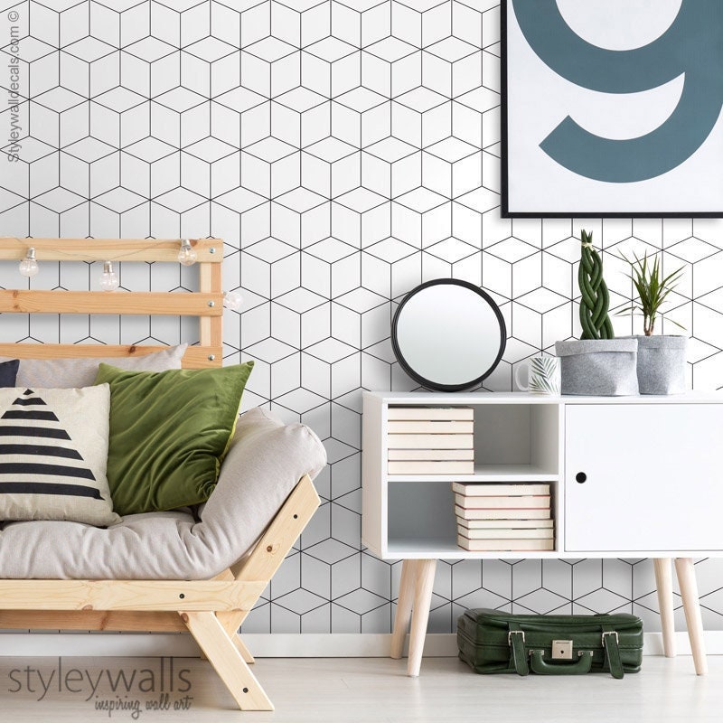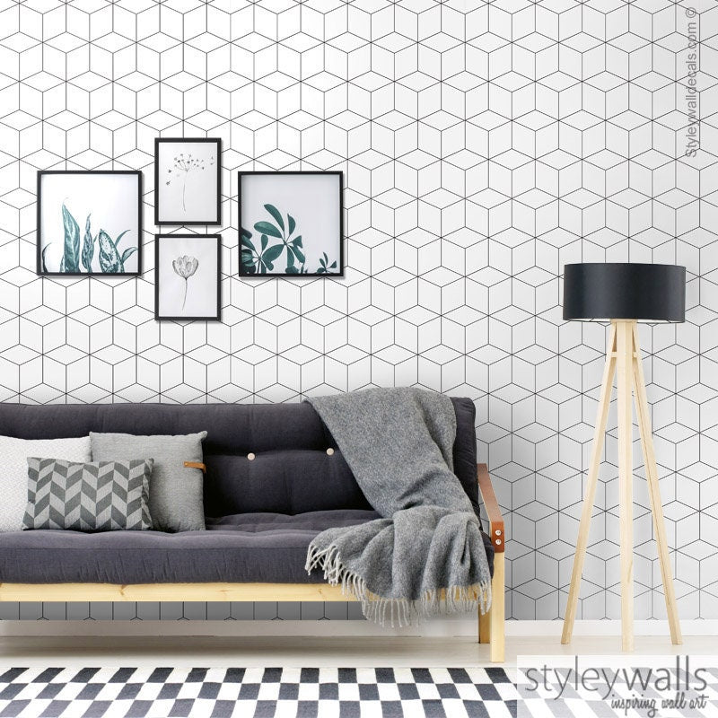 Cubes Wallpaper, Hexagon Wallpaper, Geometric Wallpaper, Abstract Modern Cubes Wallpaper, Fabric Peel and Stick, Self Adhesive