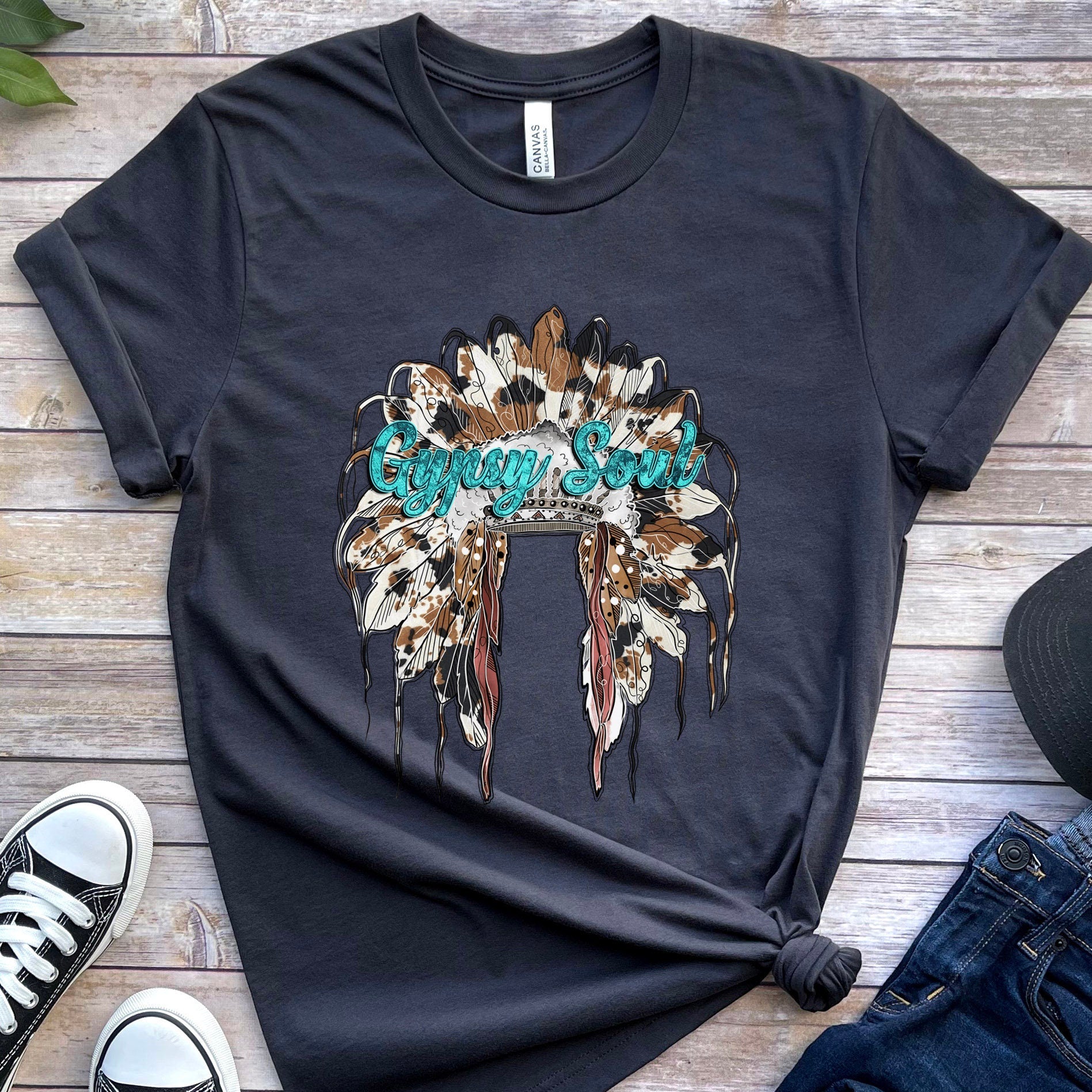 Gypsy Soul T-Shirt, Indian Hat Shirt, Indian Feathers Western Shirt, Southern Shirt, Cowgirl Shirt, Cowboy Shirt, Country Shirt, Gift Shirt