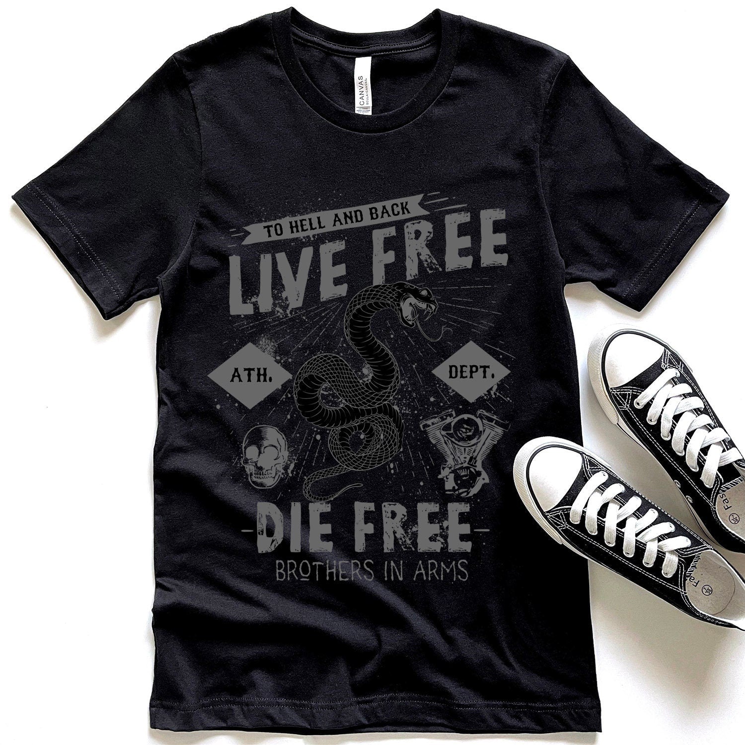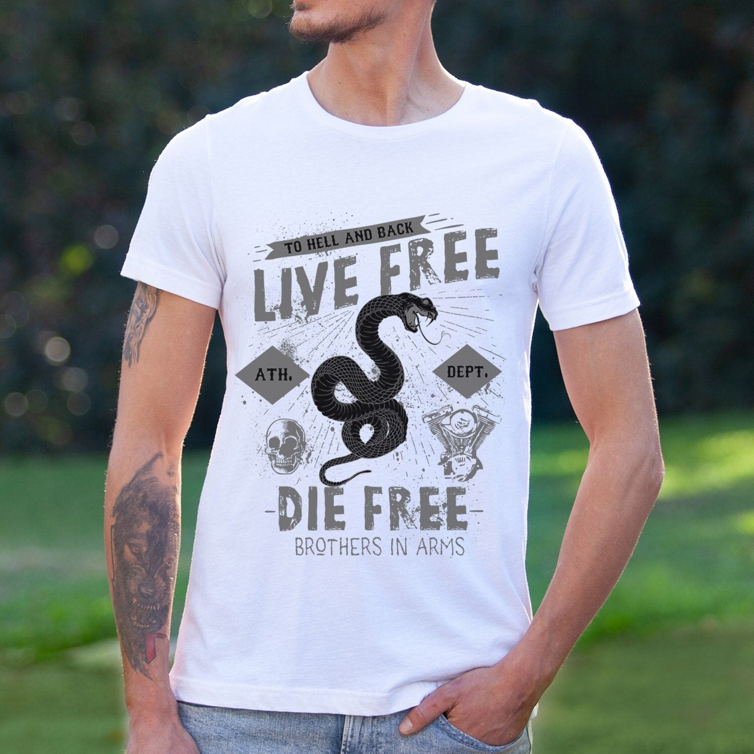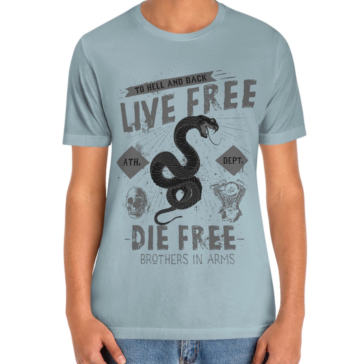 Live Free T-Shirt, T-shirt with Snake, Rider Shirt, Snake T-shirt, Metal Lovers Shirt, Rock T-shirt, Biker Shirt, Motorcycle Lover Shirt