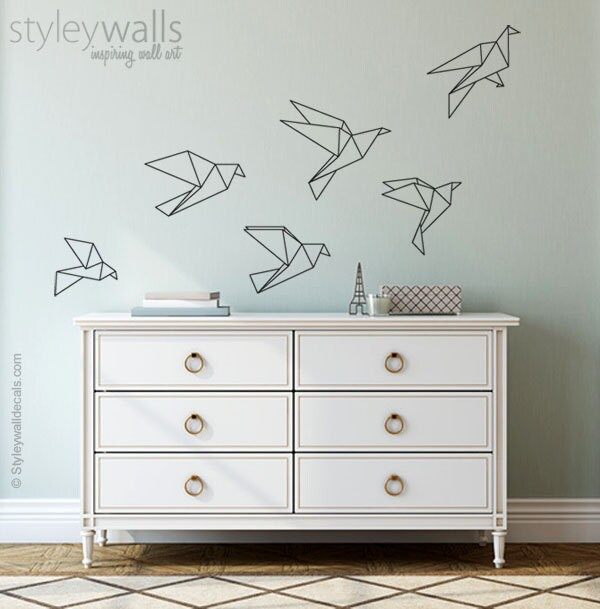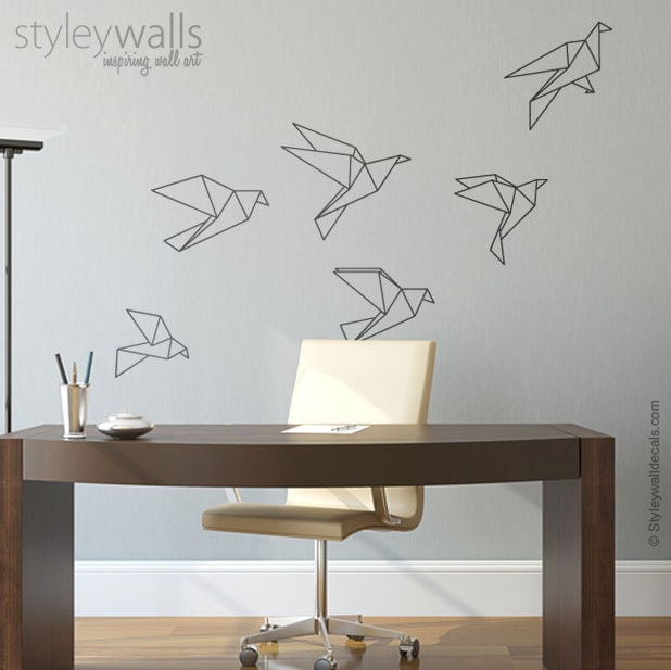 Origami Birds Wall Decal, Origami Birds Wall Sticker Christmas Gift, Set of 6 Geometric Cranes Wall Decal for Office Home Decor Living Room