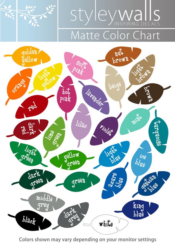 This Tree and Birds decal measures 46" wide by 69" high comes with 3 birds and falling leaves.