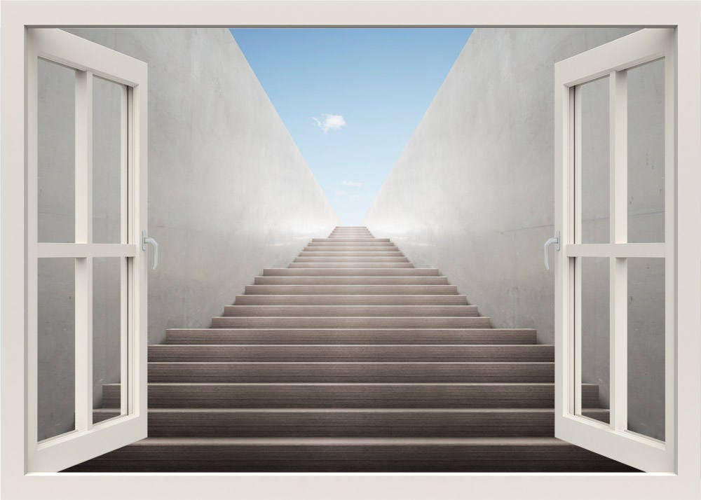 Steps Wall Decal, Steps Wall Sticker, Underground Wall Decal, 3d Window View Wall Decal, Stairs Wall Sticker Mural, Living Room Home Decor
