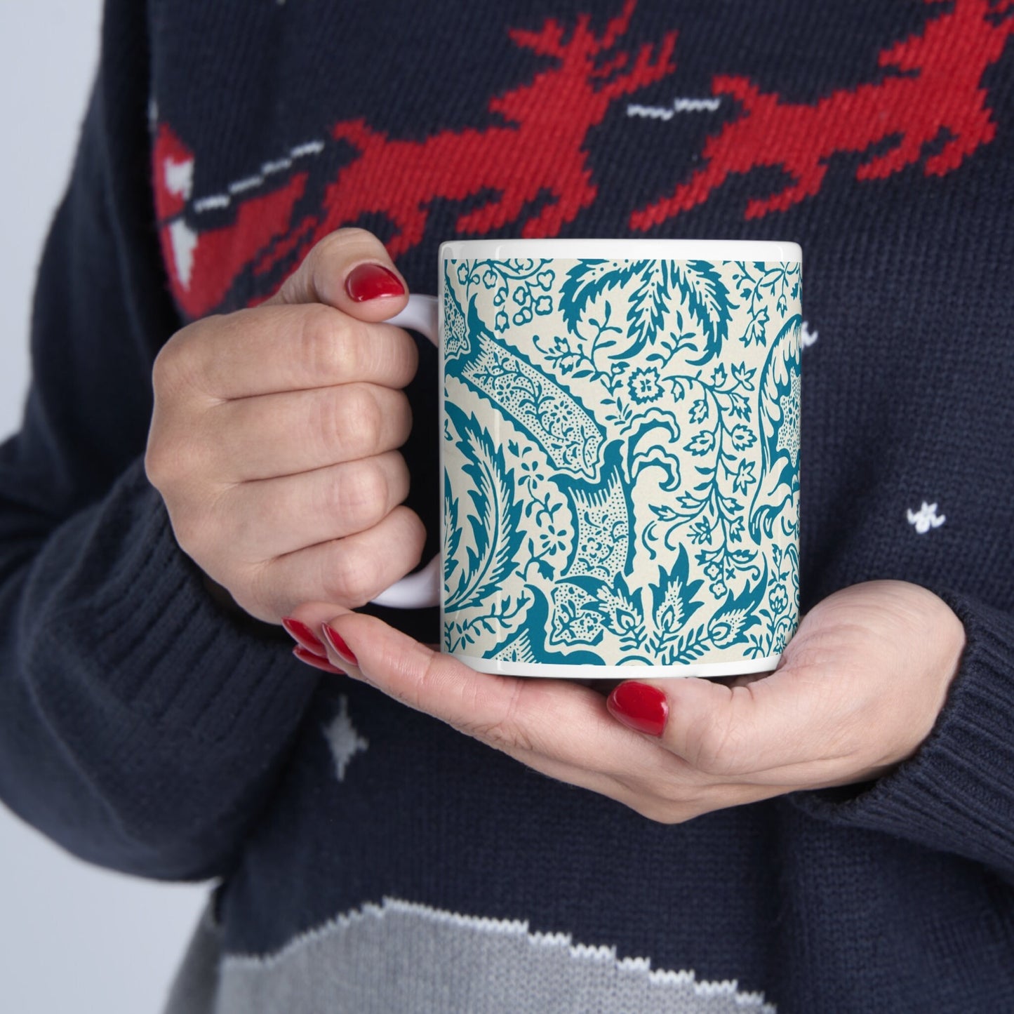 William Morris's Indian Pattern Mug, Birthday Gift Mug, White Ceramic Coffee Mug 11oz, Fine Art Mug Cup