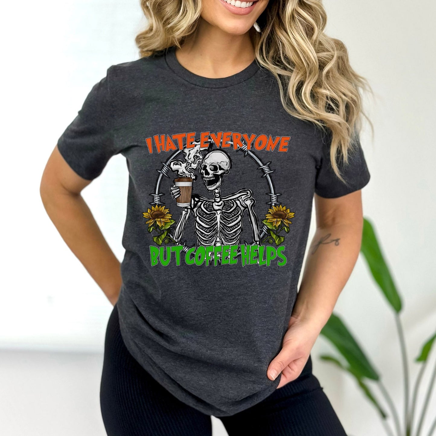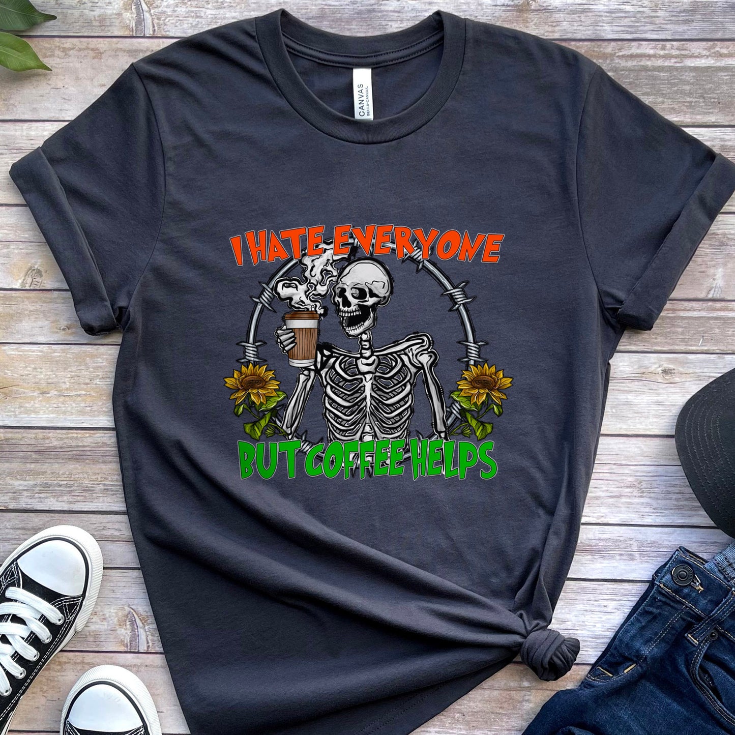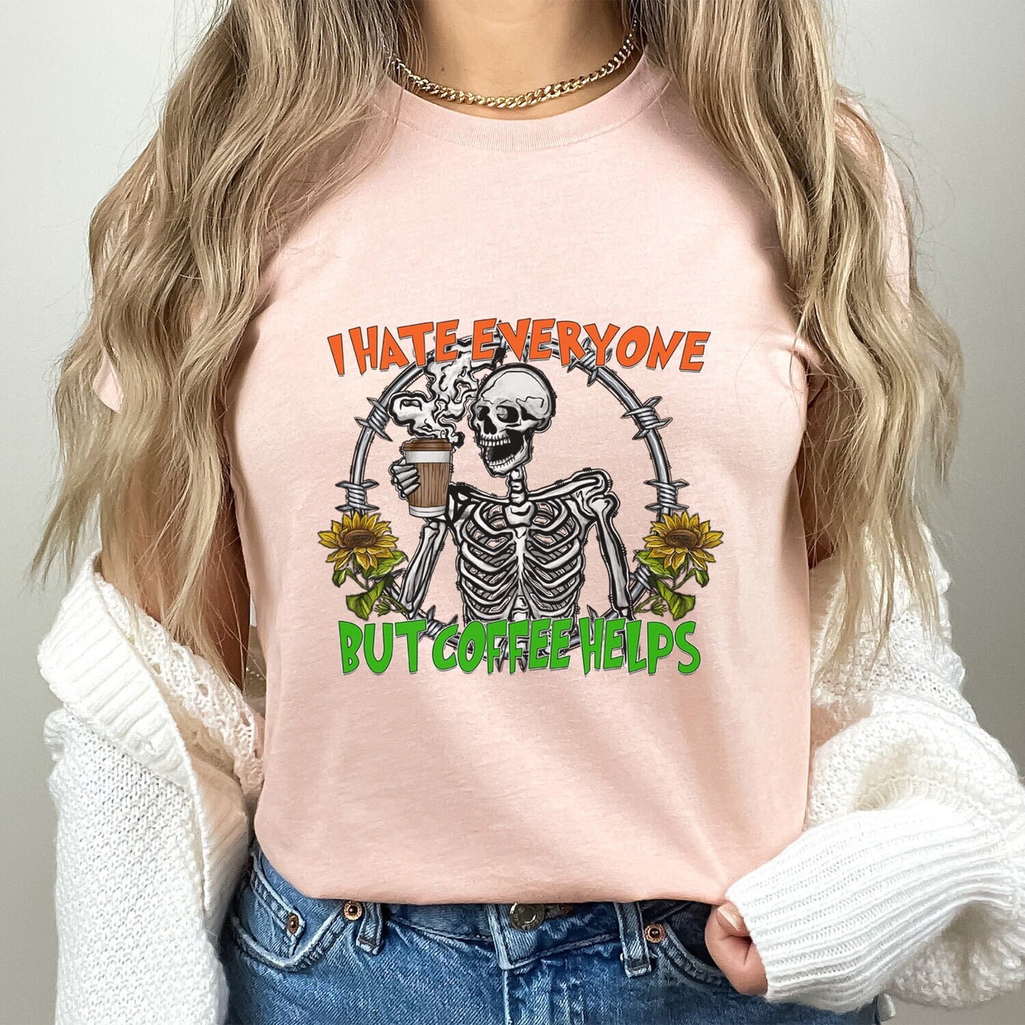 Coffee T-shirt, I Hate Everyone but Coffee Helps Shirt, Funny Shirts, Humour T-Shirt, Gift T-shirt, Gift for Her, Gift for Him