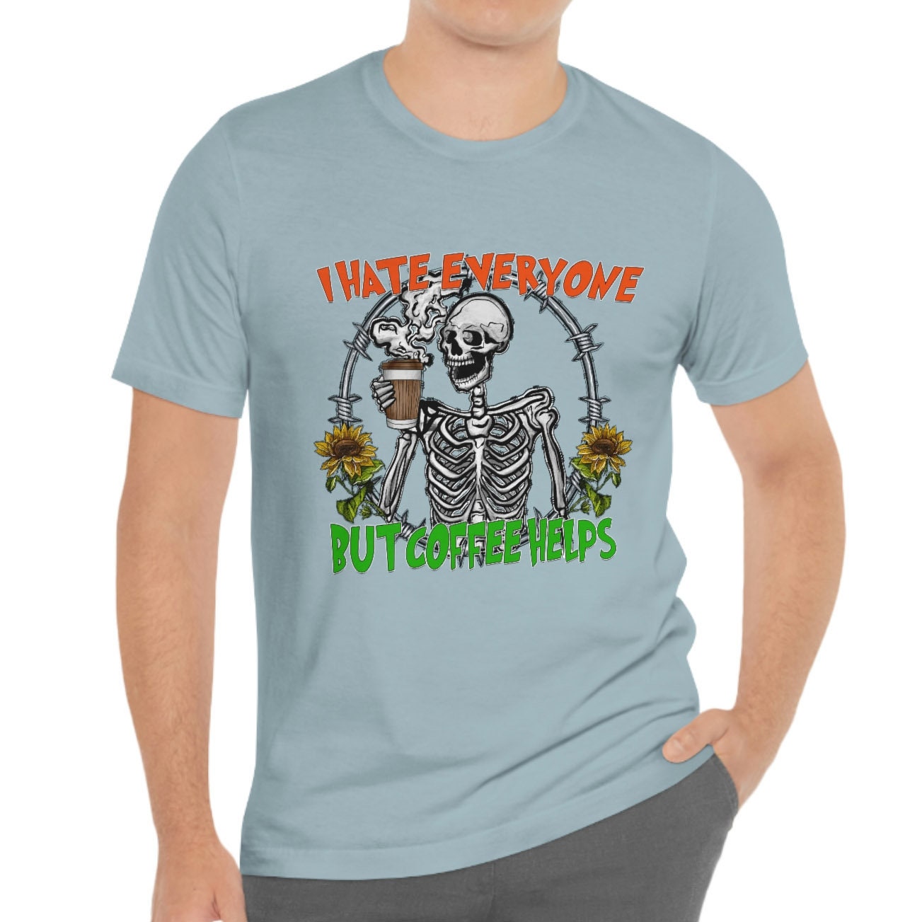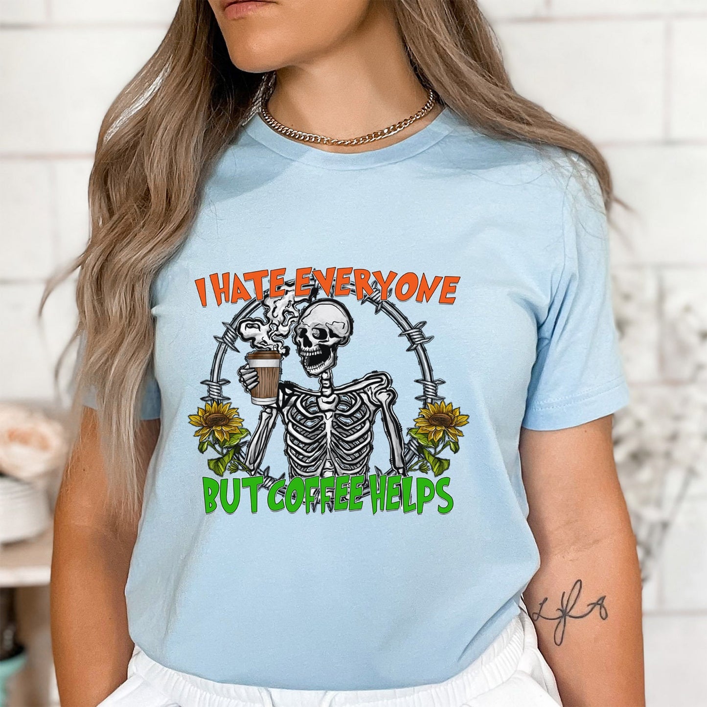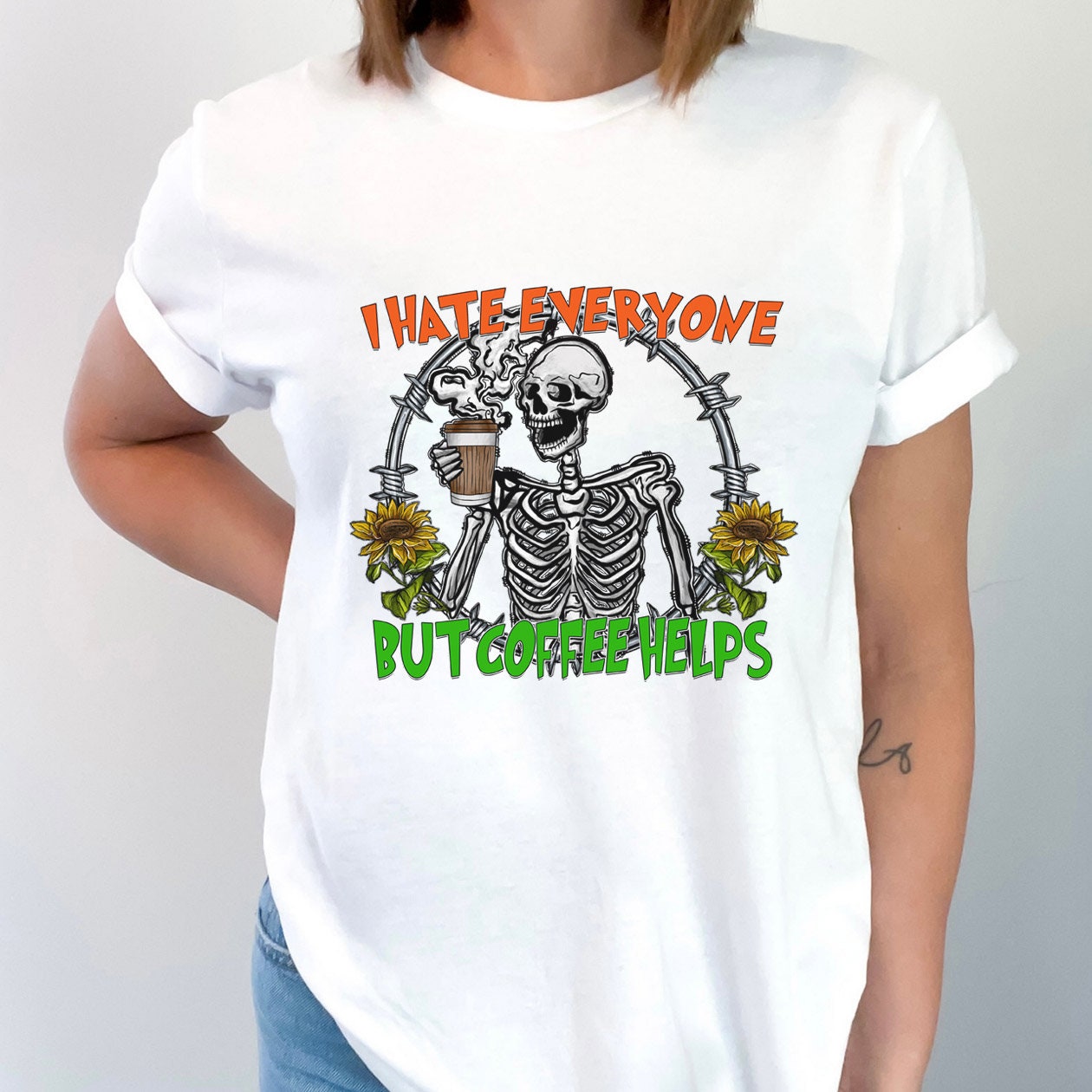 Coffee T-shirt, I Hate Everyone but Coffee Helps Shirt, Funny Shirts, Humour T-Shirt, Gift T-shirt, Gift for Her, Gift for Him