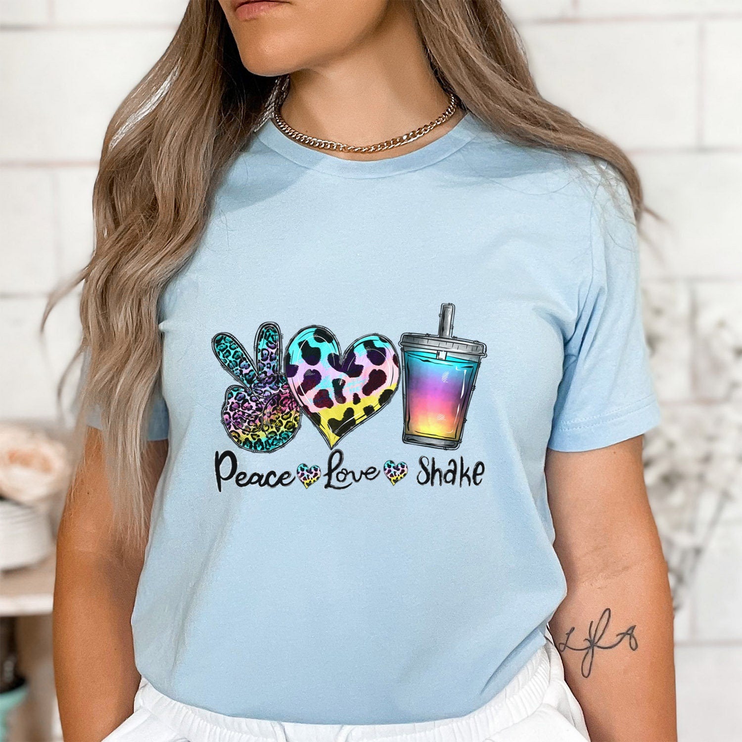 Peace Love Shake Shirt, Shake Lover T-Shirt, Drink Lover Shirt, Gift Shirt for Her, Like Heart Shake