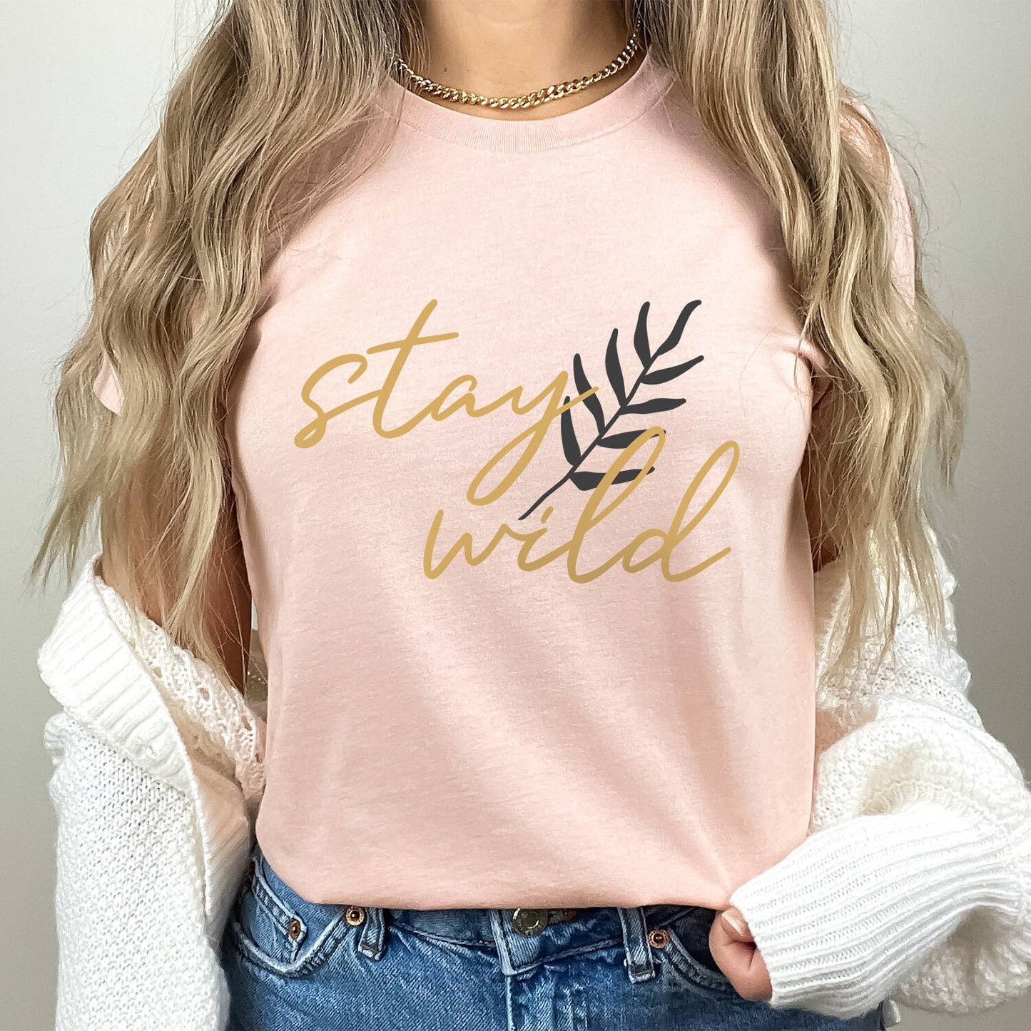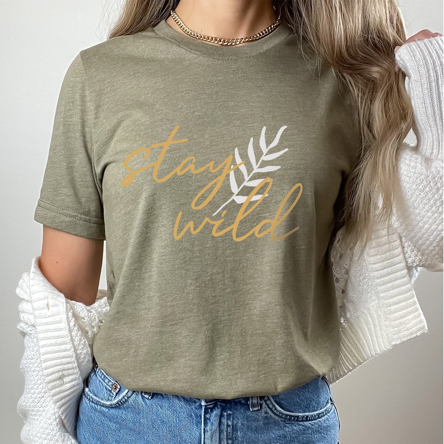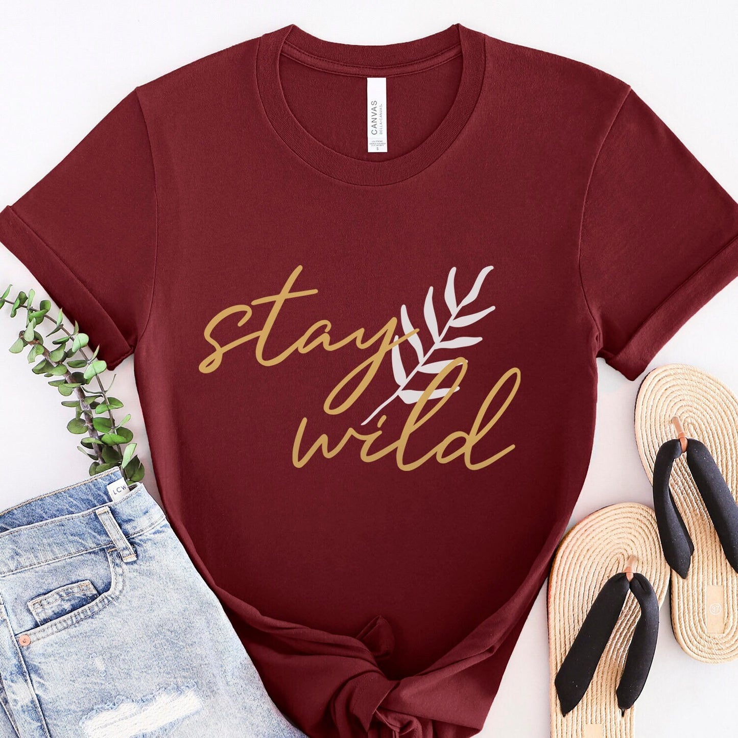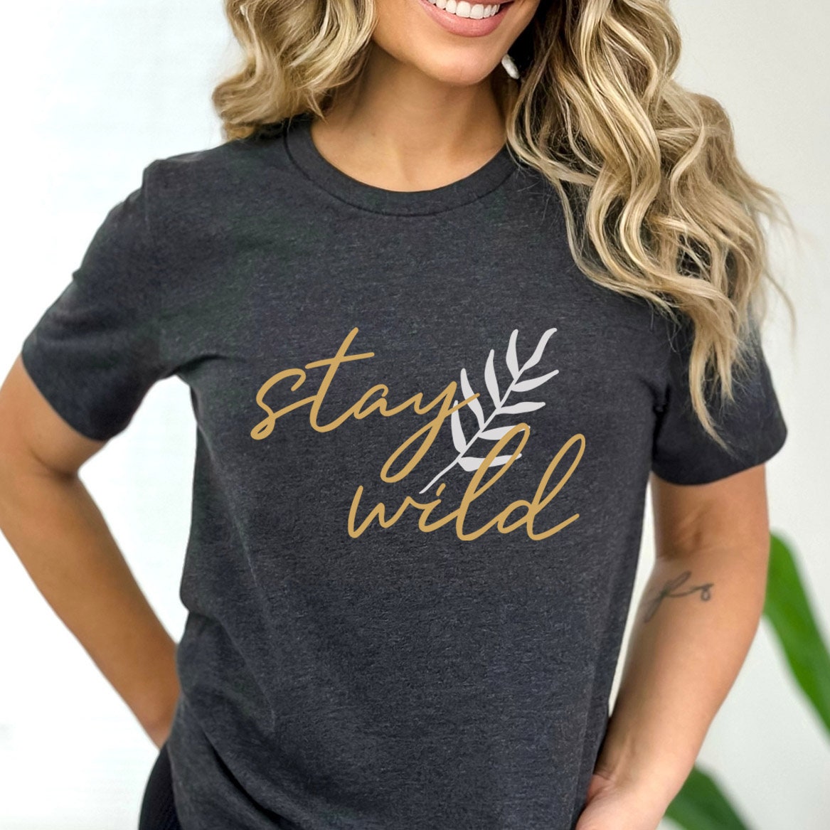 Stay Wild Jungle T-shirt, Boho T-shirt, Inspirational T-shirt, Bohemian T-shirt, Floral Leaves T-Shirt, Gift Shirt for Her