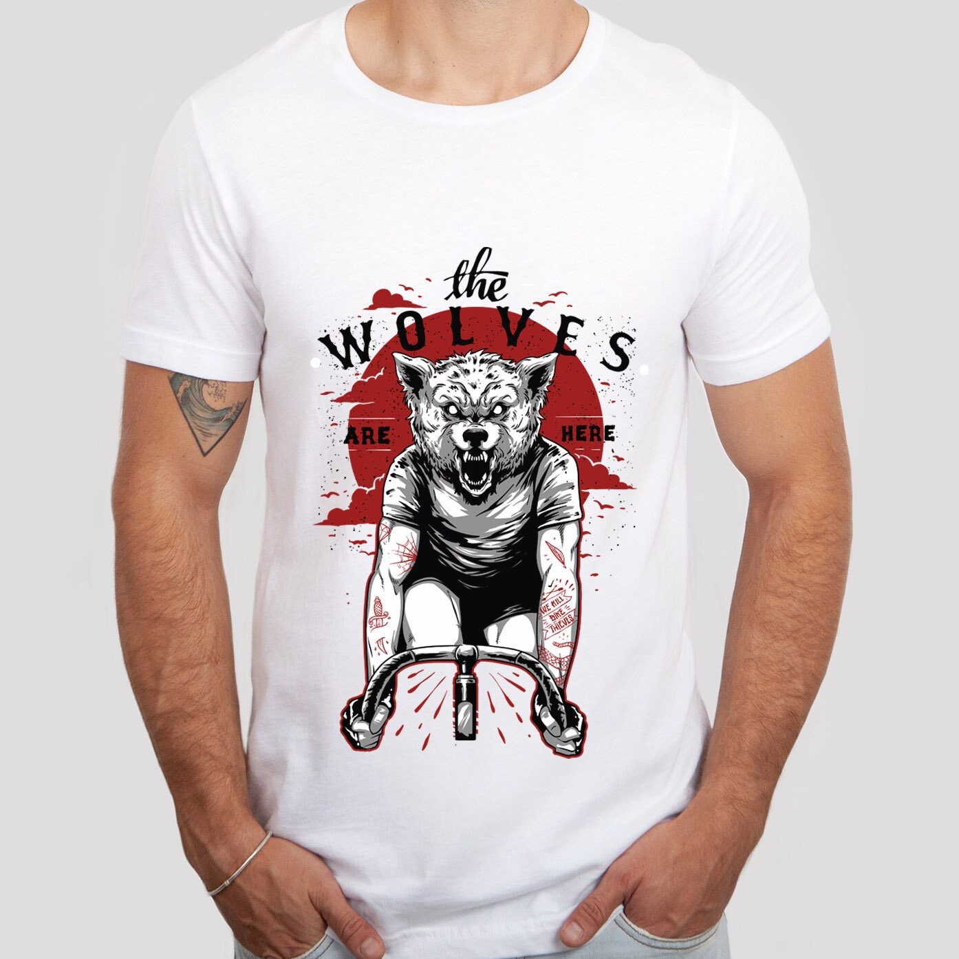 The Wolves are Here T-shirt, T-shirt with Wolf, Horror Shirt, Scary Shirt, Wolf with Tattoos Riding a Bike, Gothic Shirt