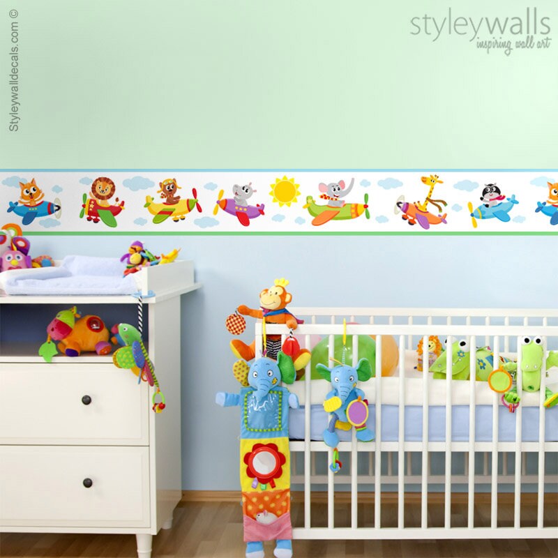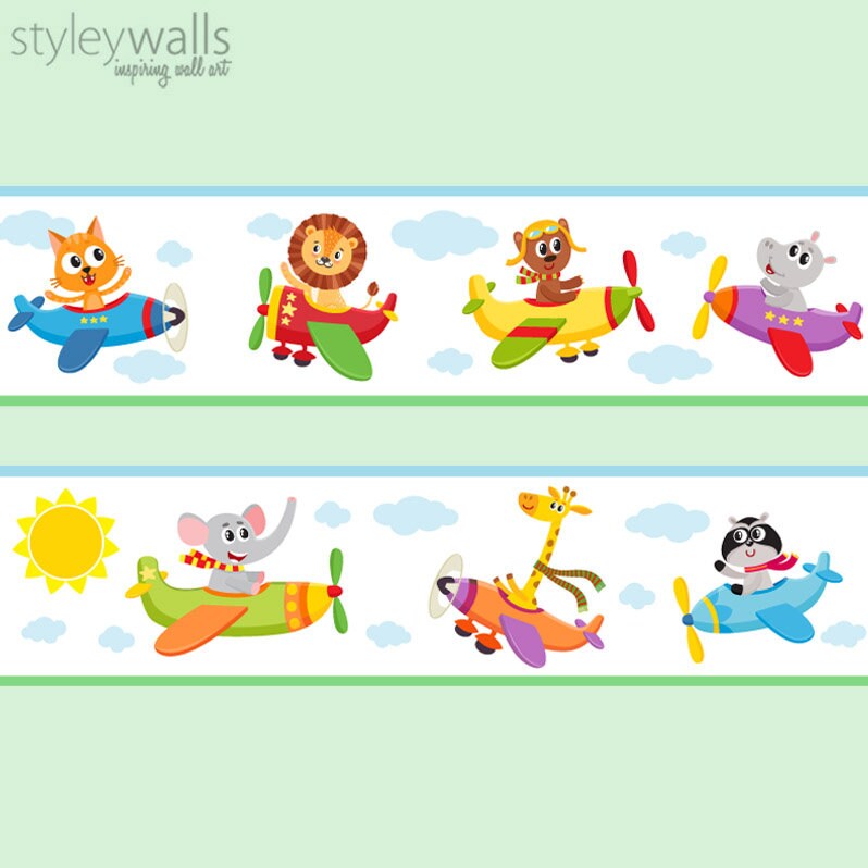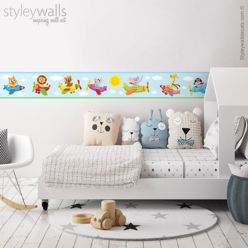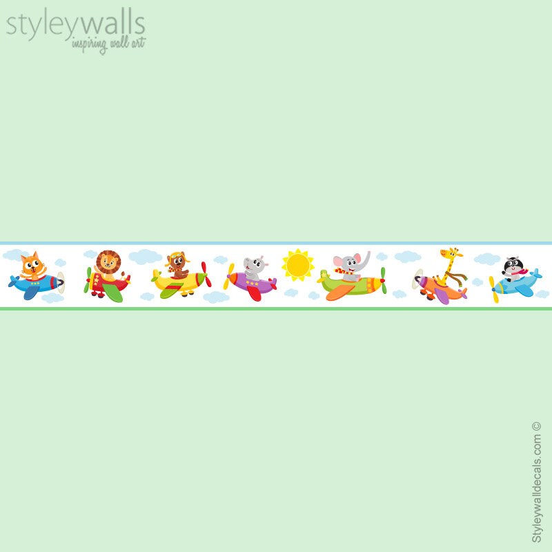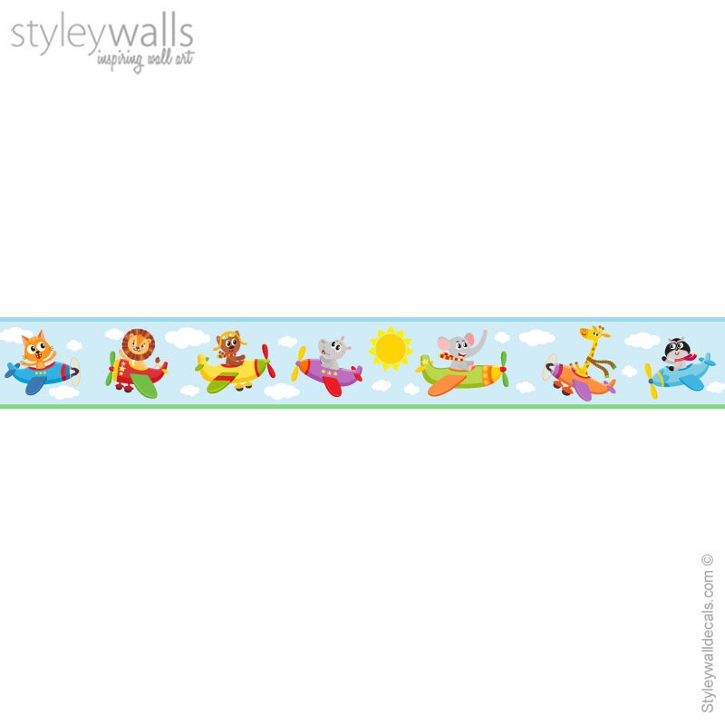Autocollant mural pour bordure d'avions, autocollant mural pour bordure d'avions volants avec animaux, bordure murale repositionnable pour véhicules, décoration de chambre de garçons