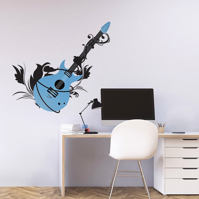 Electric Guitar Wall Decal, Blue Guitar Wall Sticker, Guitar Wall Decor for Teenage Room, Rock Band Wall Decal, Rock n Roll Music Wall Decal