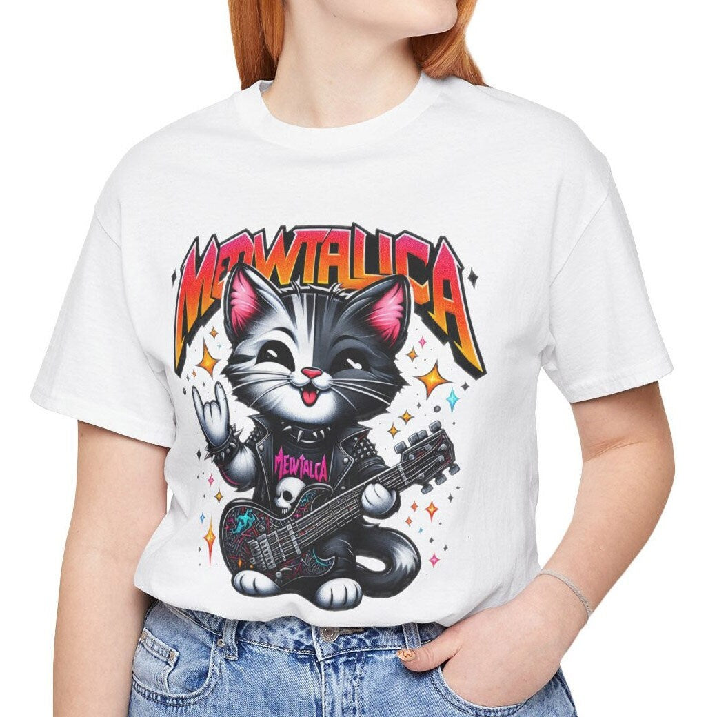 T-shirt drôle de chat Meowtallica, t-shirt de chat humoristique, t-shirt amusant pour les amoureux des chats, t-shirt Rockstar CatTee, t-shirt cadeau pour les amoureux des chats, t-shirt drôle