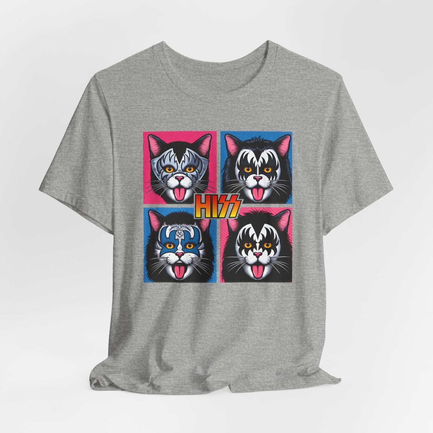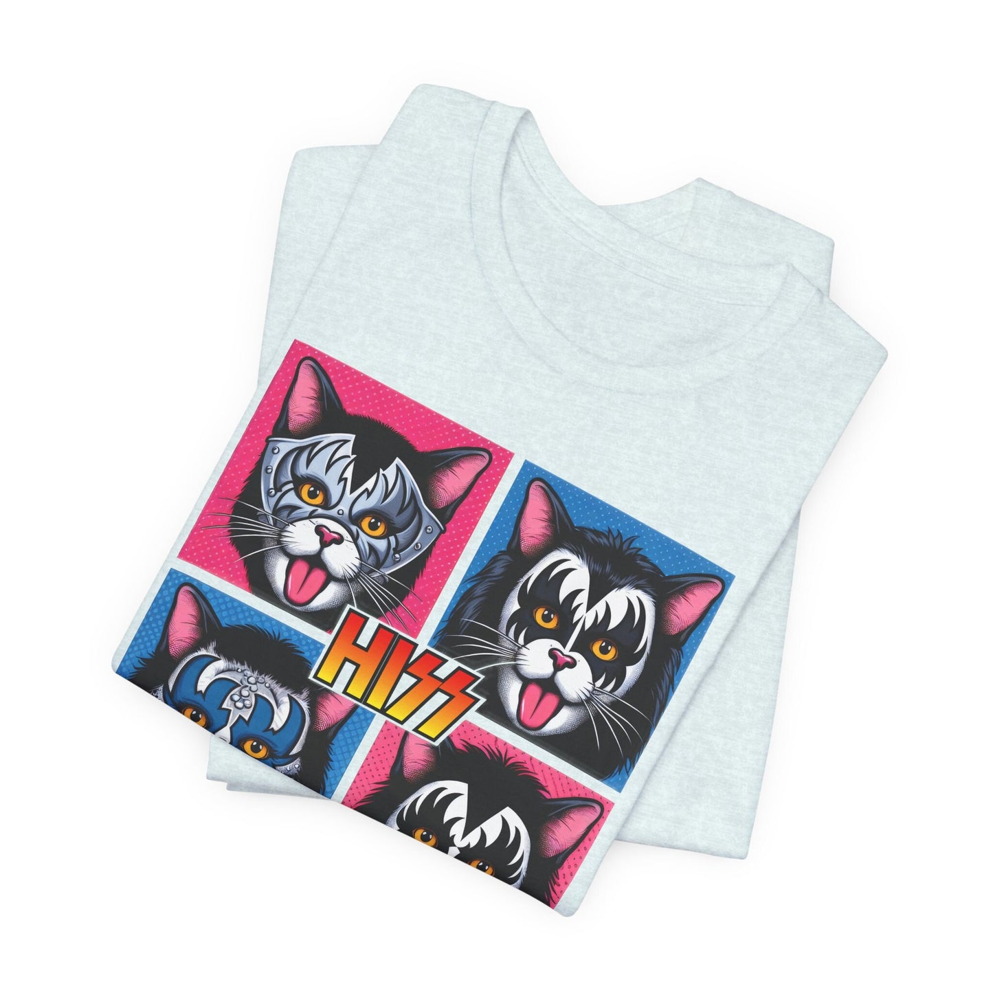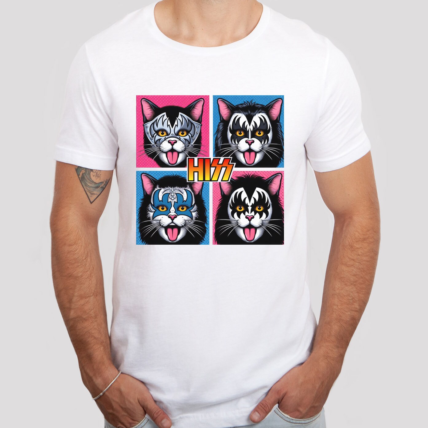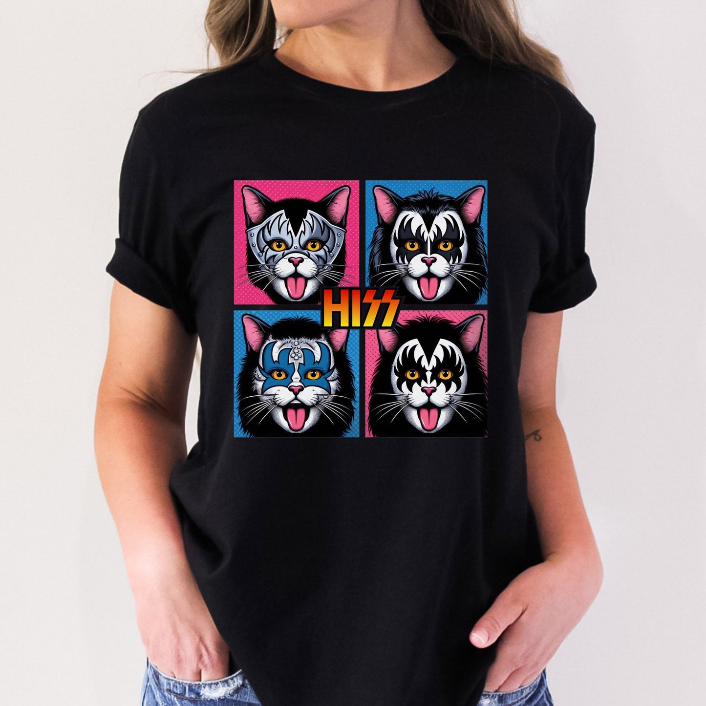 T-shirt parodique de baiser drôle, T-shirt de style pop art Hiss Rocker Kittens, T-shirt de chats rocker, T-shirt de chat humoristique, T-shirt cadeau pour les amoureux des chats