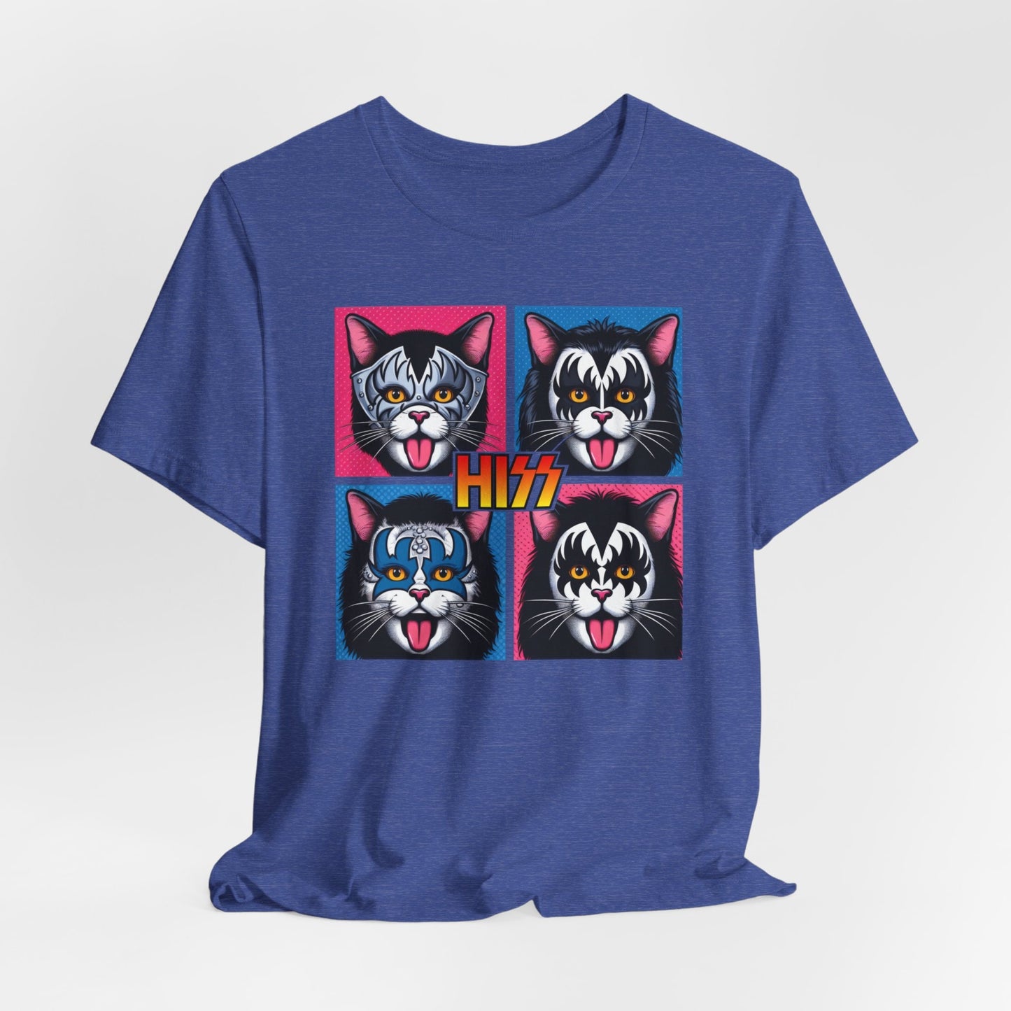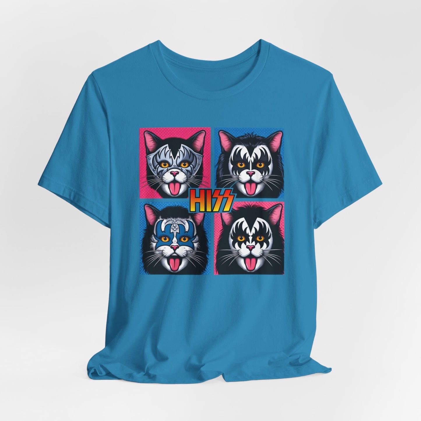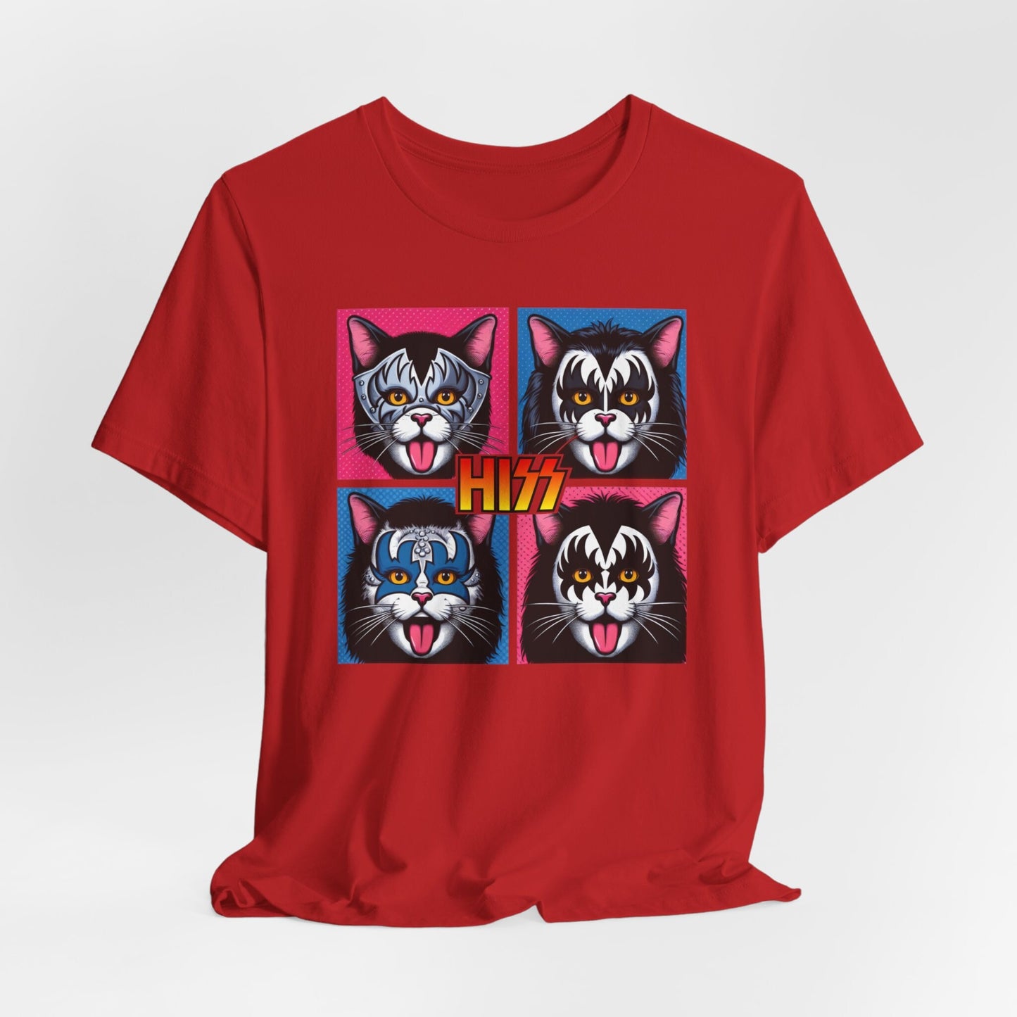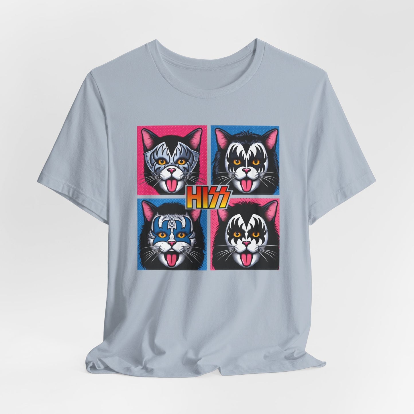 T-shirt parodique de baiser drôle, T-shirt de style pop art Hiss Rocker Kittens, T-shirt de chats rocker, T-shirt de chat humoristique, T-shirt cadeau pour les amoureux des chats