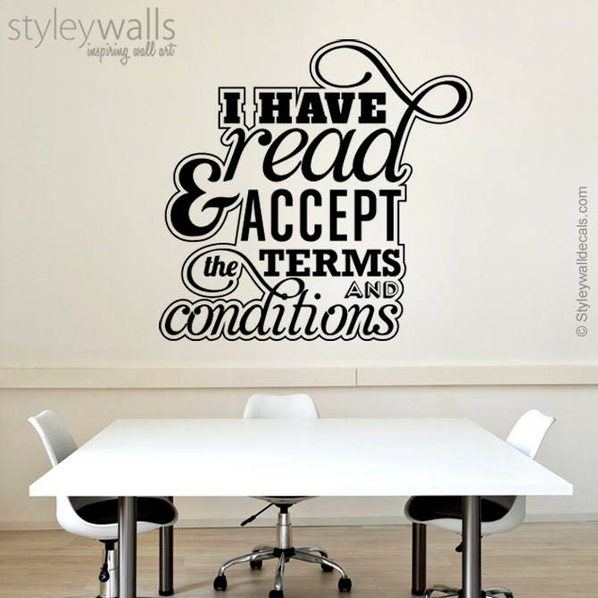 J'ai lu et j'accepte les conditions générales Sticker mural avec citation pour bureau, lettrage en vinyle, lettrage en vinyle inspirant