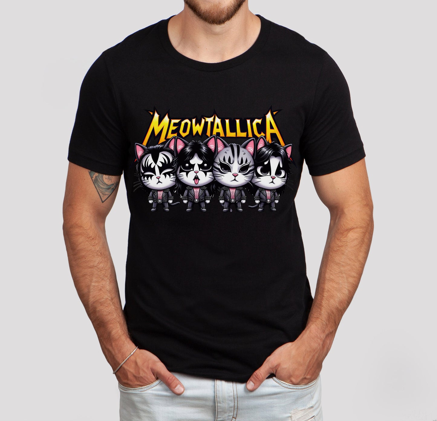 T-shirt Meowtallica Cats, T-shirt drôle de chat, T-shirt Rocker Cats, T-shirt cadeau pour amoureux des chats, T-shirt drôle de parodie de Metallica, T-shirt cadeau pour propriétaire de chat