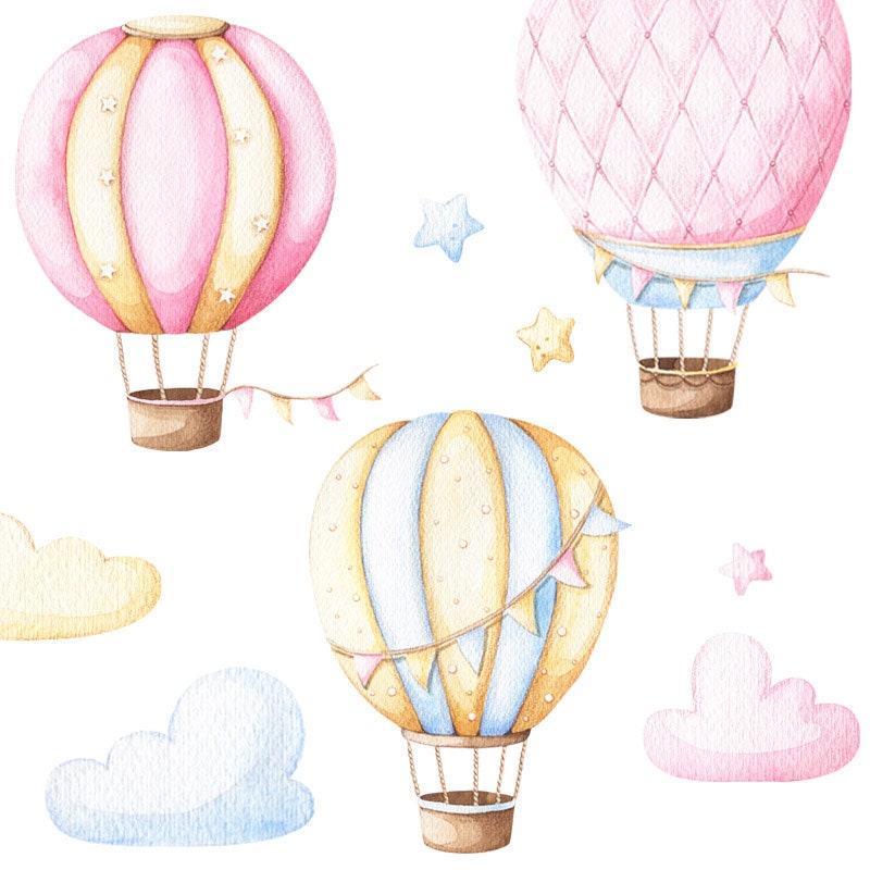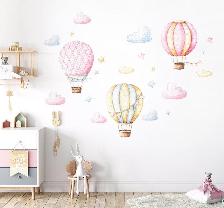 Autocollant mural avec montgolfières roses, autocollant mural avec nuages et montgolfières, décoration murale pour chambre d'enfant, décoration murale pour chambre de fille