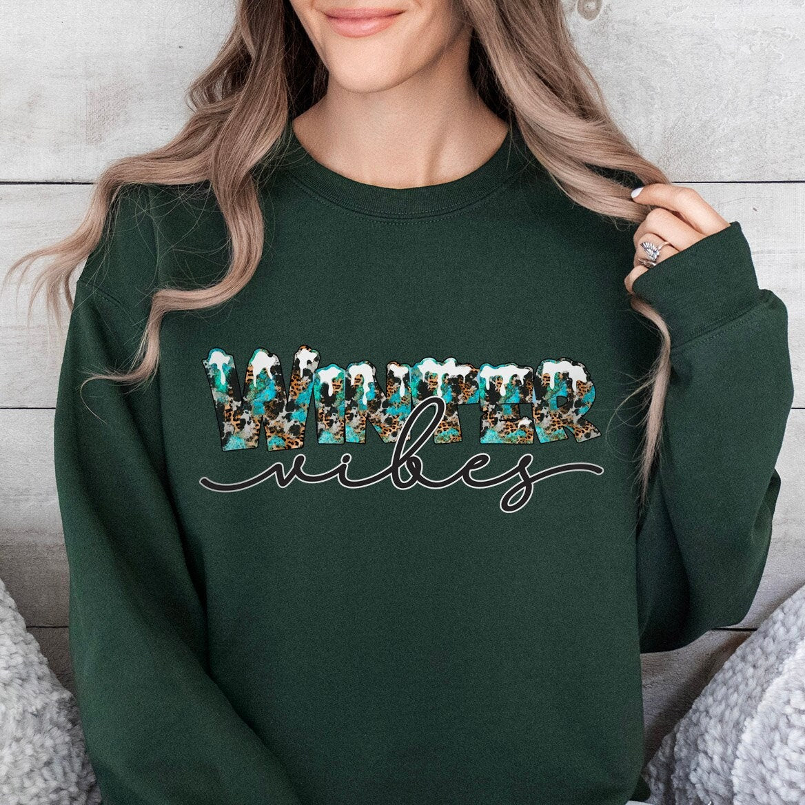 Sweat-shirt Winter Vibes Snow, chemise cadeau à manches longues de Noël, sweat-shirt cadeau unisexe pour les vacances d'hiver de Noël, cadeau pour elle, cadeau pour lui