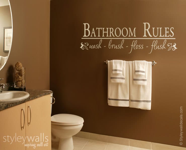 Bathroom Wall Decal Bathroom Rules Wash Brush Floss Flush Wall Decal