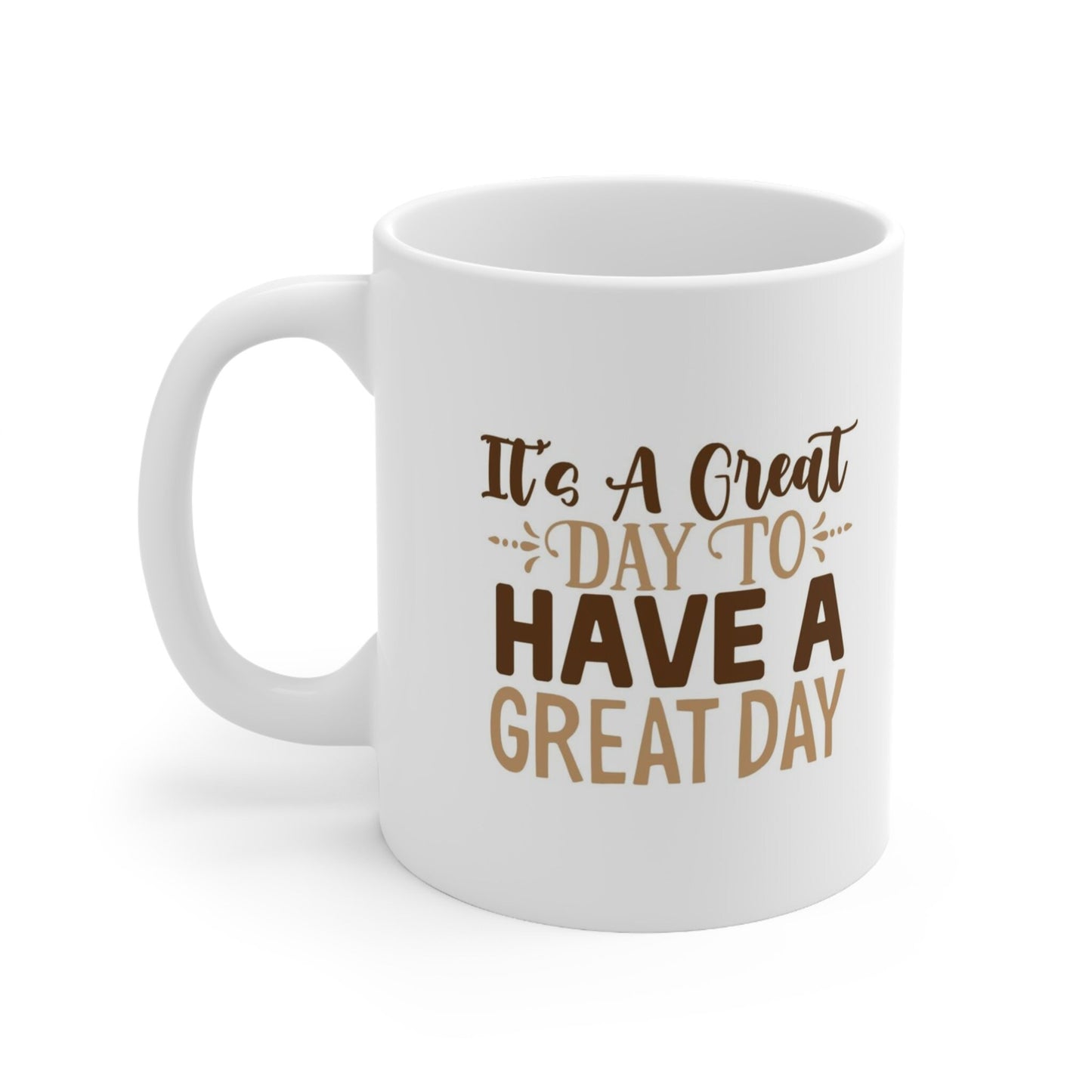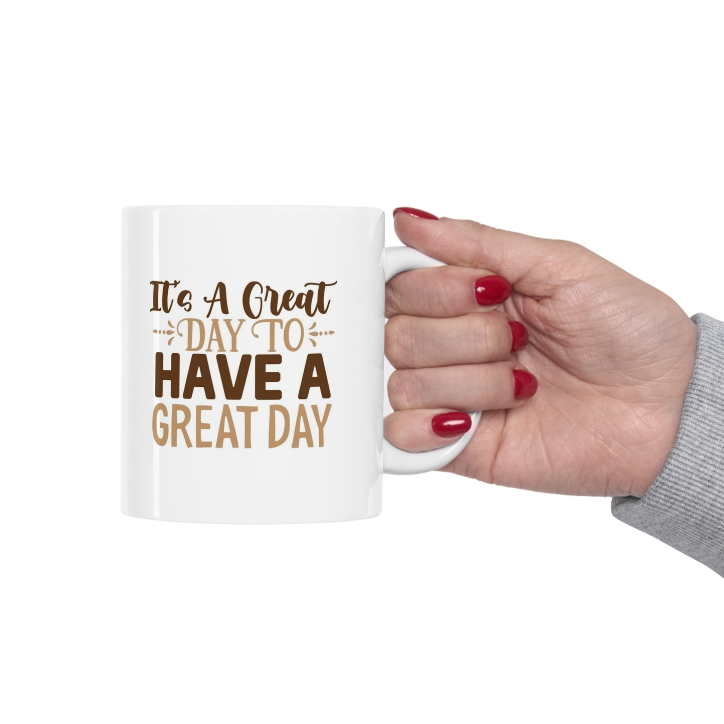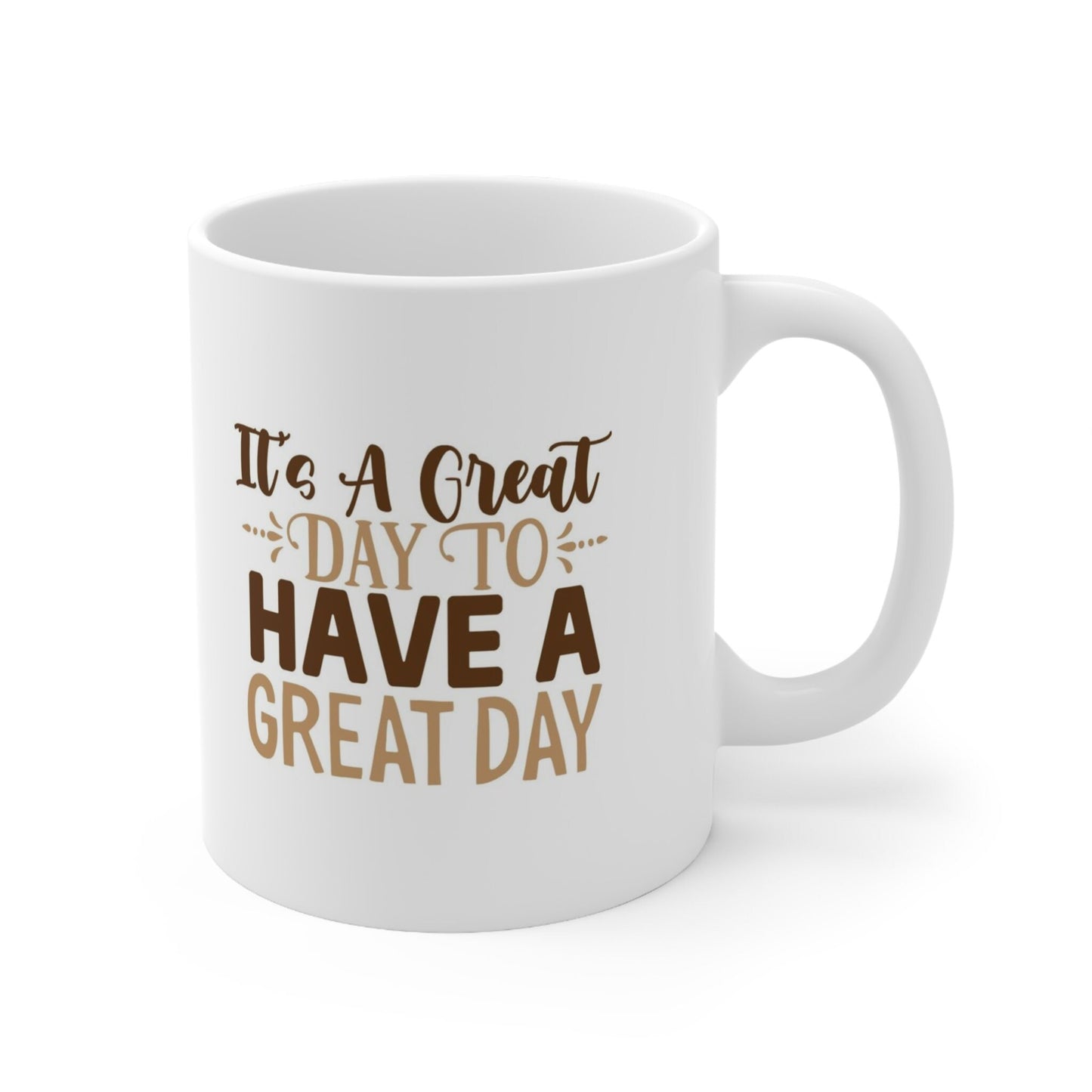 Birthday Gift Mug, Inspirational Mug, Mug with a Quote, White Ceramic Coffee Mug 11oz, t's a Great Day to Have a Great Day