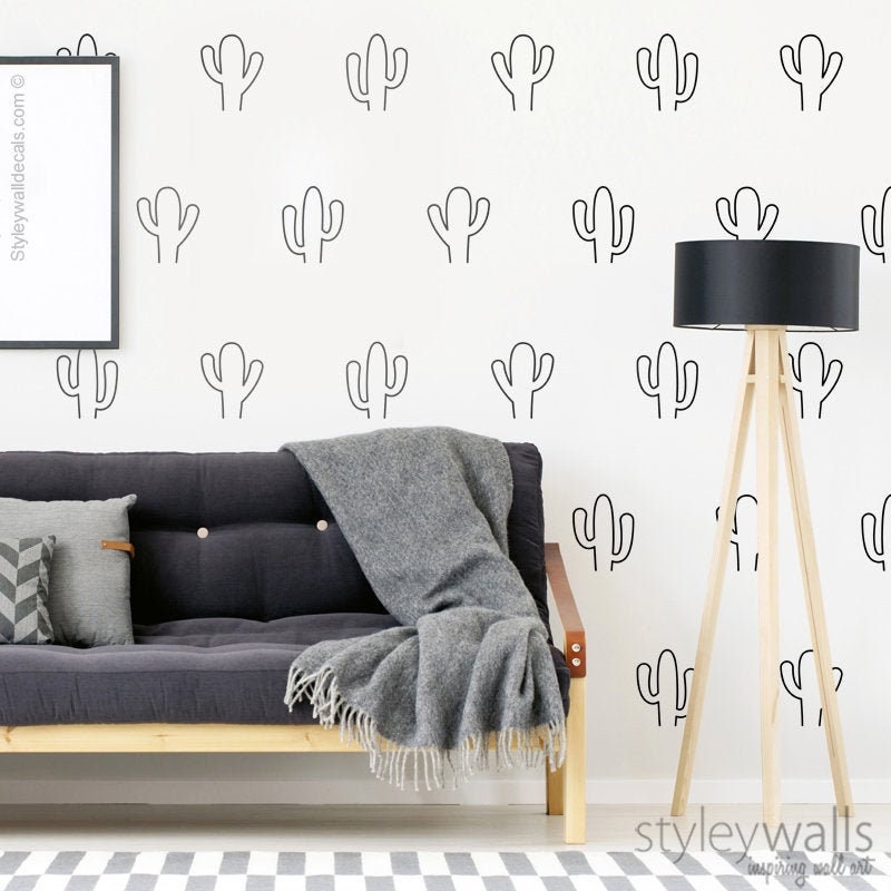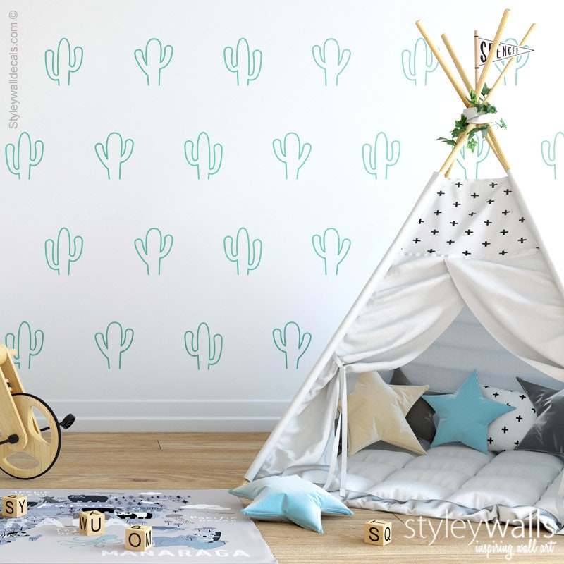 Cactus Wall Decal, Cacti Wall Decal, Cactus Pattern Wall Decal, Cactus Lines Wall Decor, Cactus Room Decor, Nursery Kids Room Wall Decals