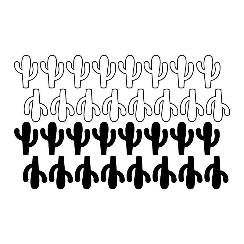 The set includes: 32 Cactus Wall Decals ( 2 different styles, 16 from each)
