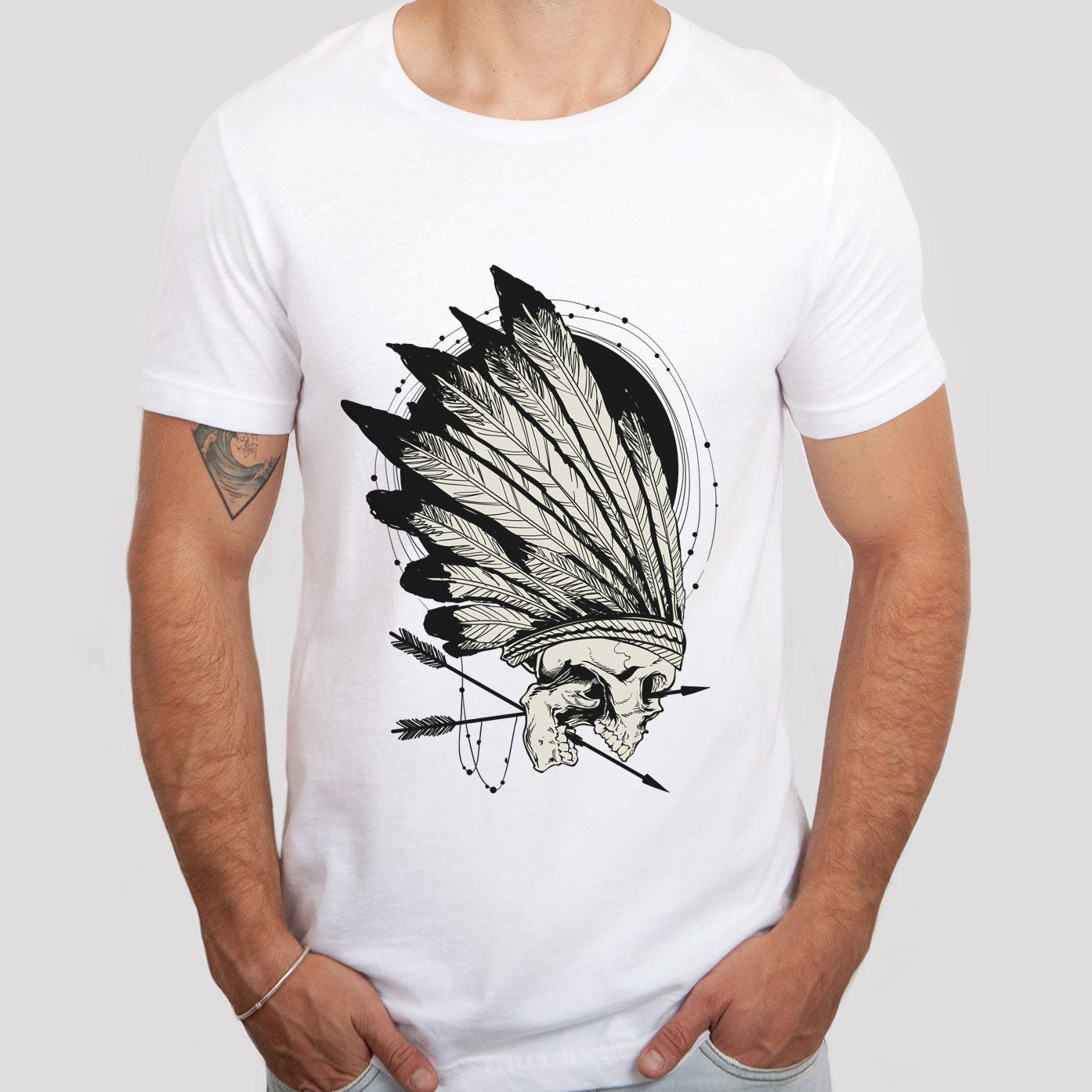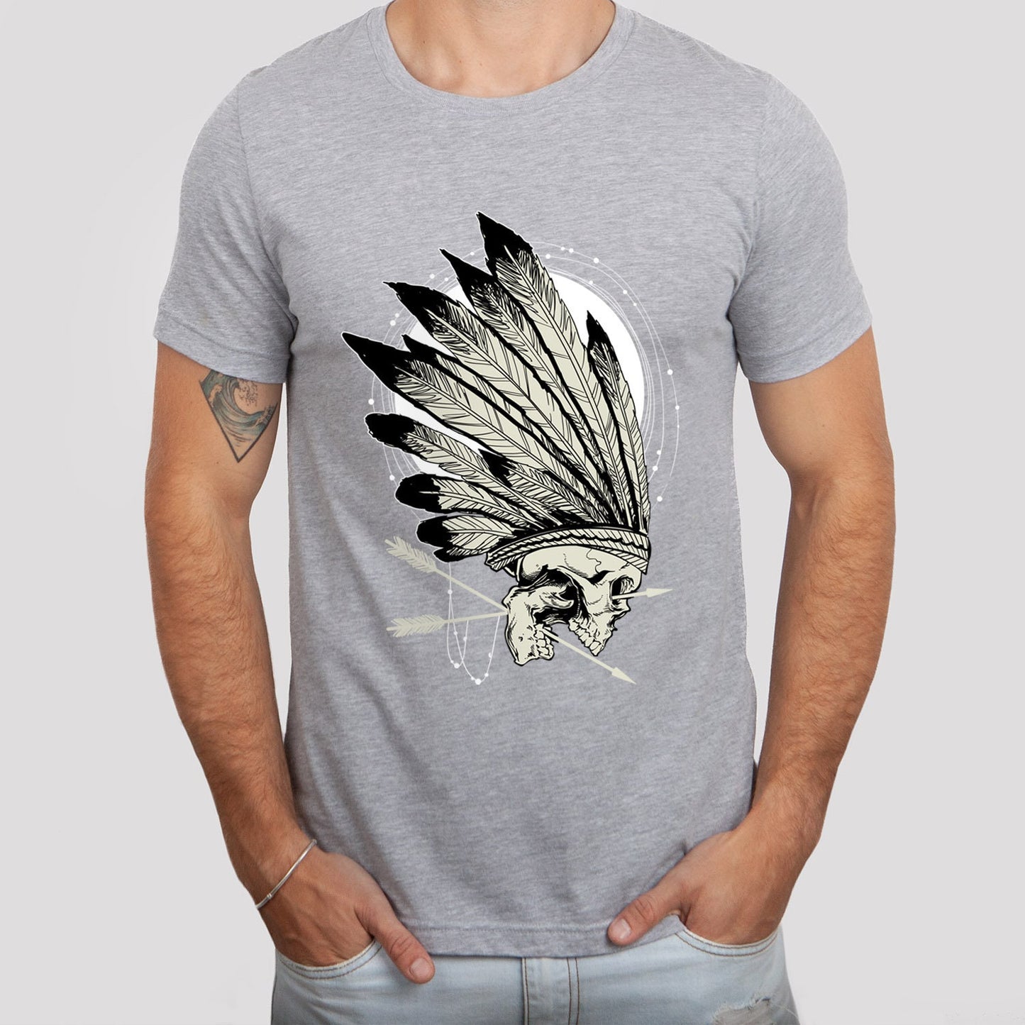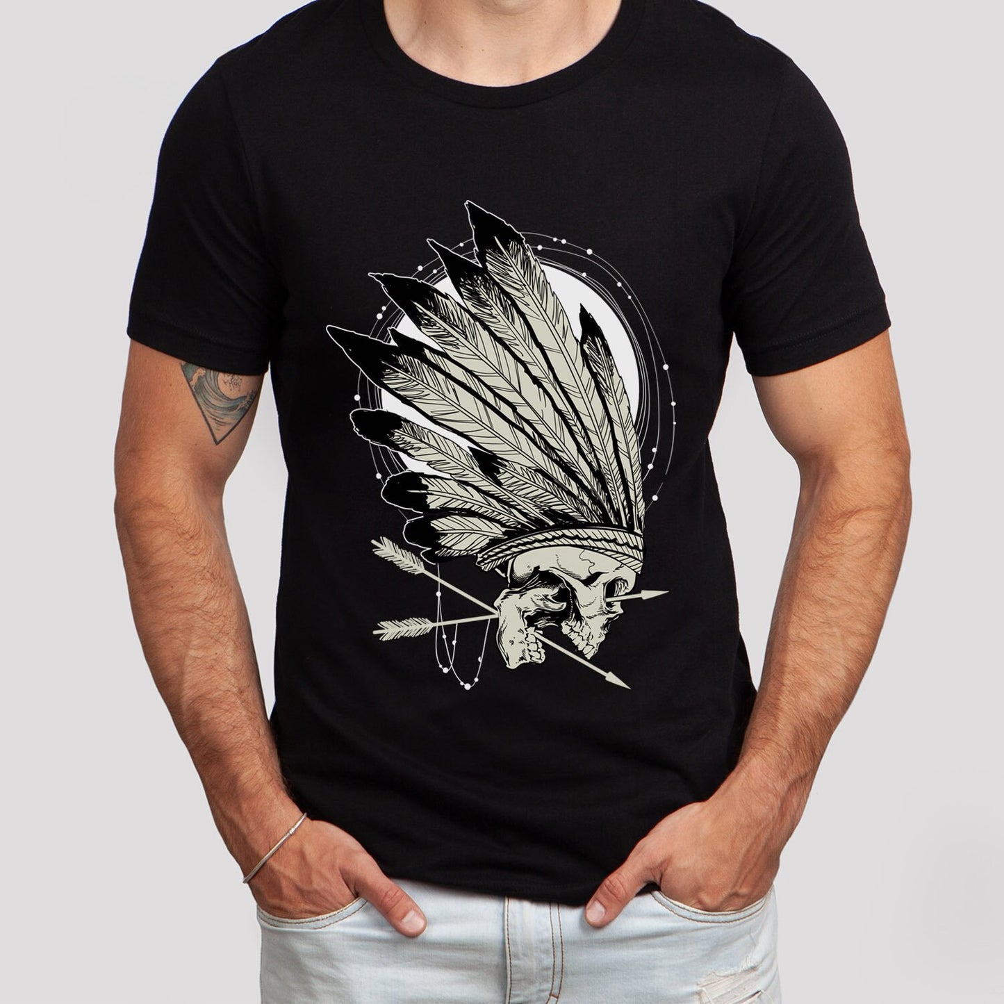 Conquerors T-shirt, Skull Skeleton T-shirt, Indian Feathers T-shirt, Motorcycle T-Shirt, Rider Shirt, Biker Shirt, Rockers T-shirt