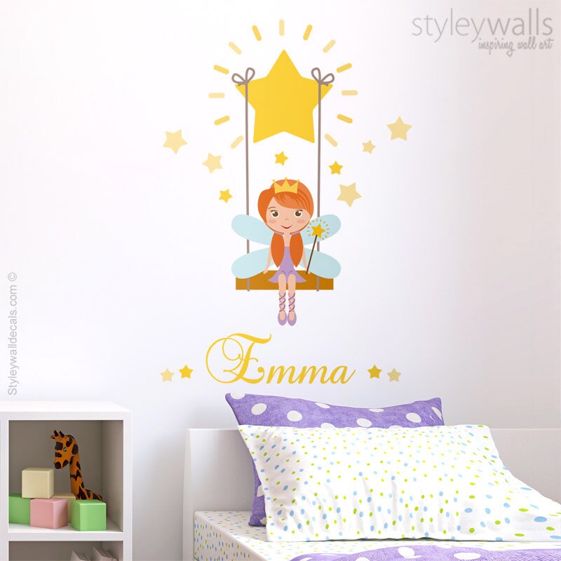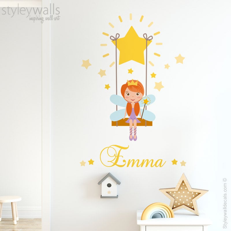 Fairy Wall Decal, Star Wall Decal Sticker, Princess Fairy Wall Decal Decor, Stars Room Decor, Personalized Girls Nursery Room Decor Wall Art