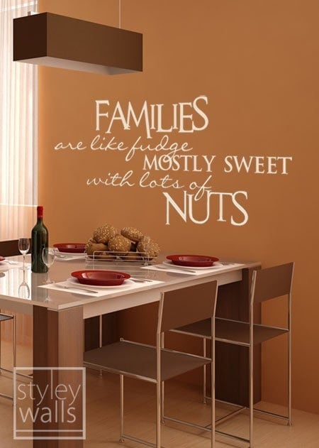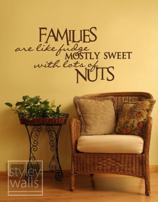 Families are Like Fudge Mostly Sweet with Lots of Nuts Wall Quote Vinyl Lettering, Wall Quote for Home Decor Wall Decal