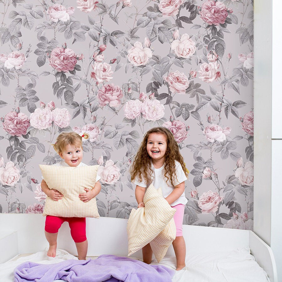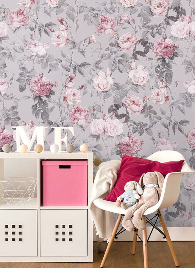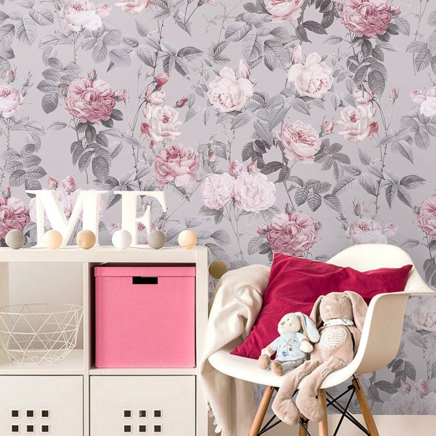 Floral Wallpaper, Flowers Wallpaper, Roses Wallpaper' Garden Flowers Vintage Repositionable Fabric Self Adhesive Wallpaper