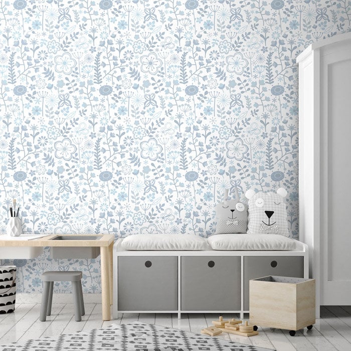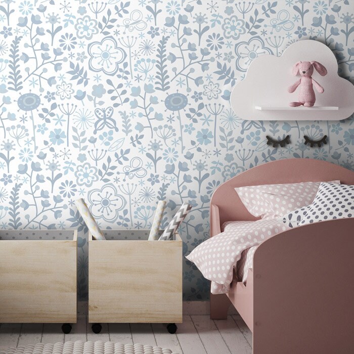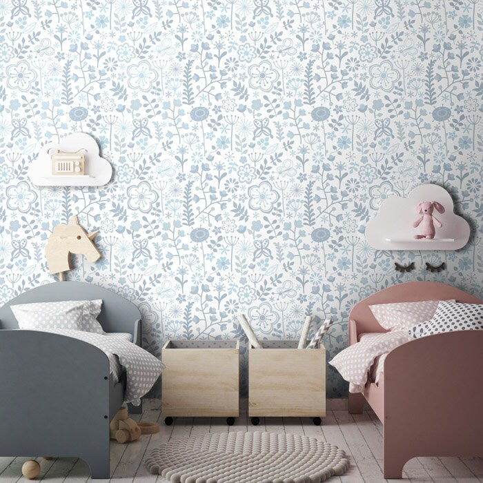 Flowers Floral Wallpaper, Flowers Pattern Wallpaper, Repositionable Removable Fabric Wallpaper, Girls Room Decor, Peel and Stick Wallpaper