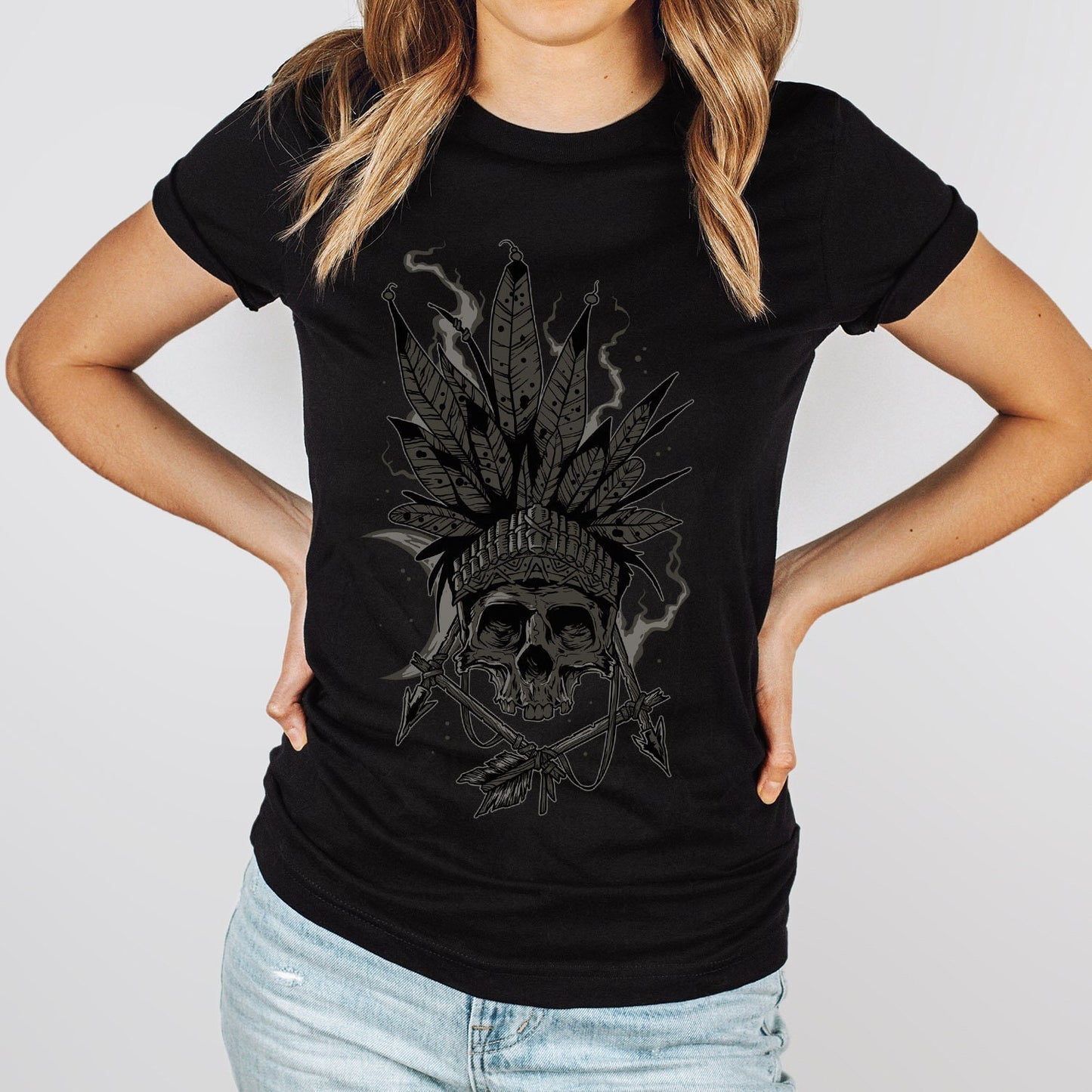 Indian T-shirt, Tribal T-shirt, Indian Feathers T-shirt, Skull T-Shirt, Mystical Gift T-shirt, Gothic T-Shirt, Fantasy and Myth T-shirt