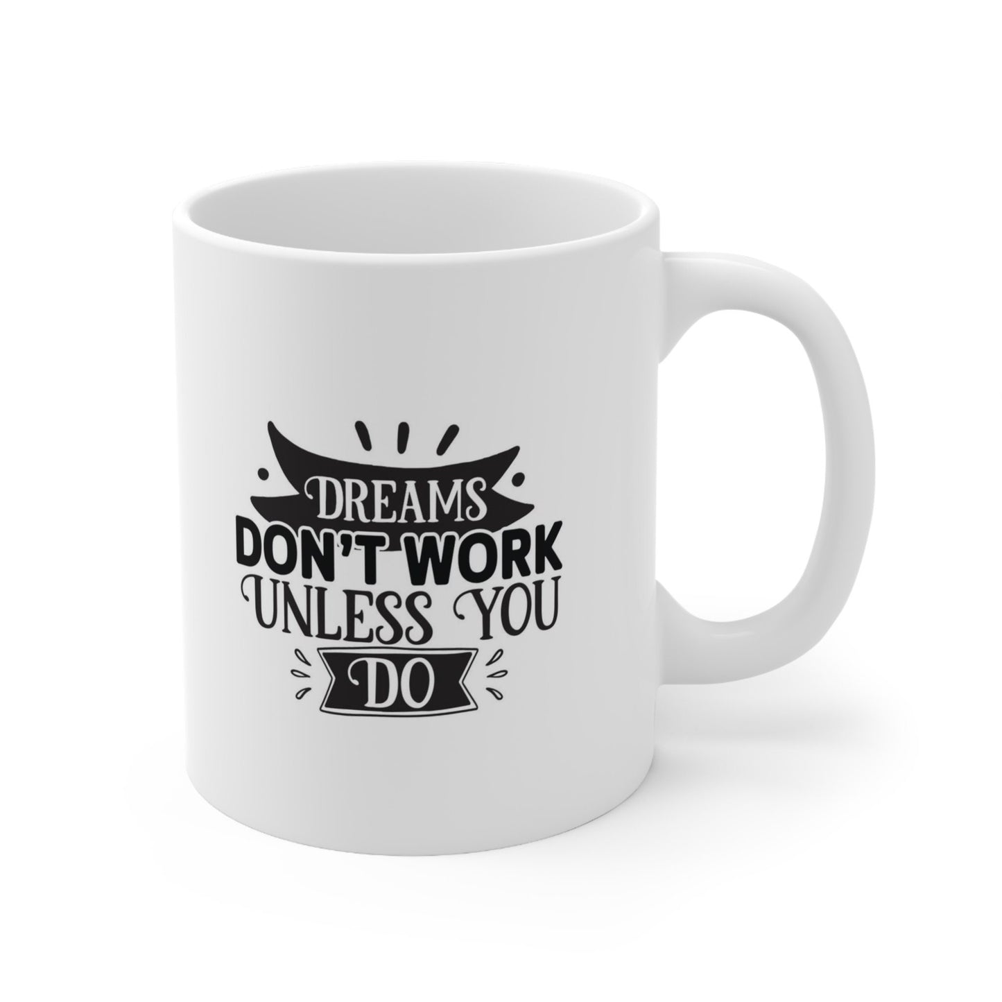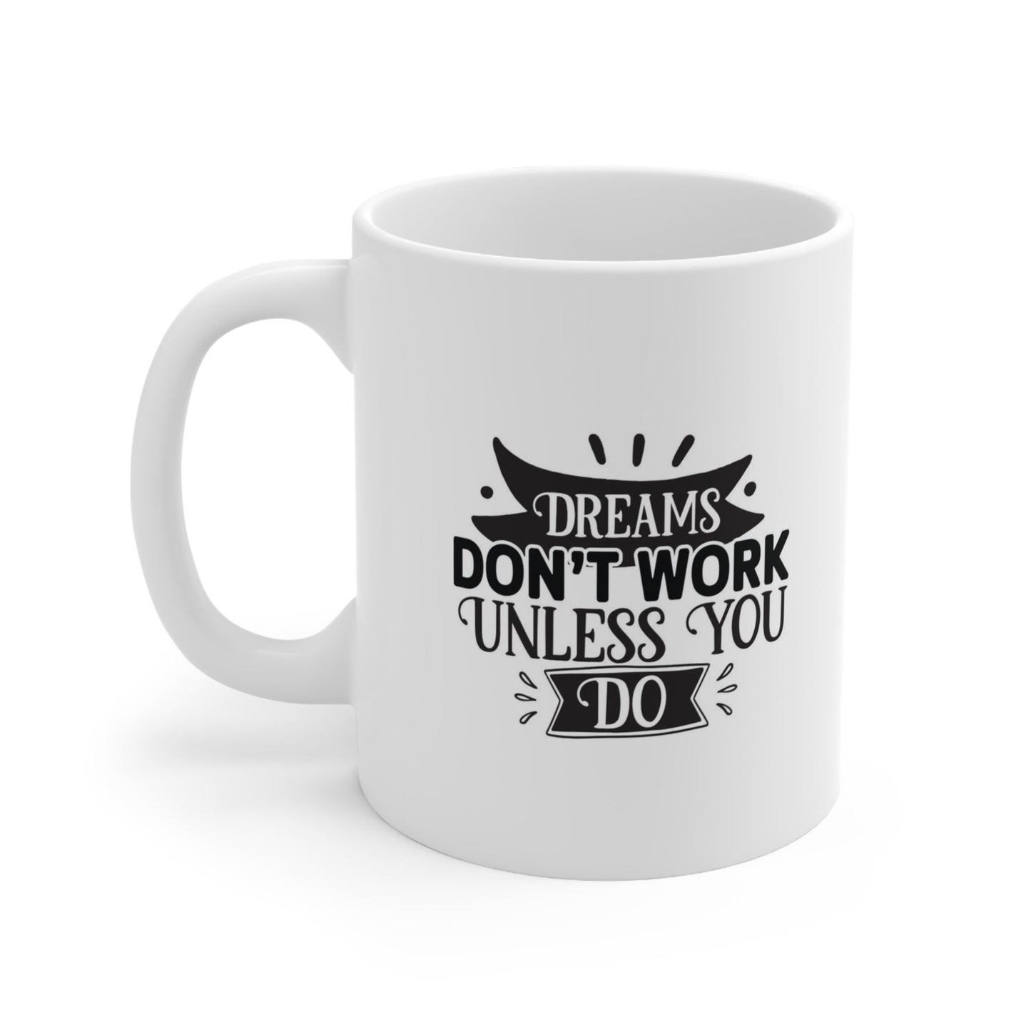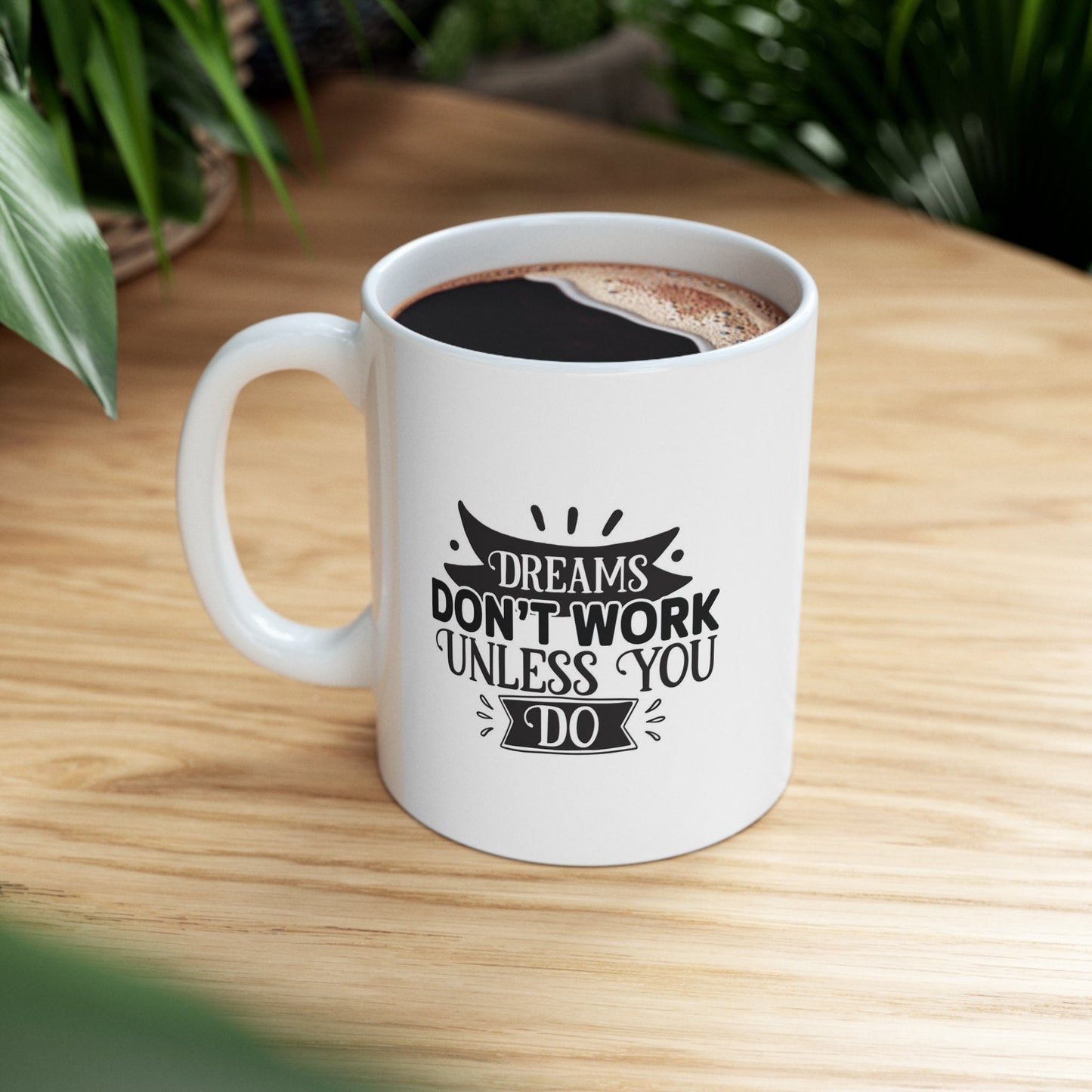 Inspirational Mug, Dreams Don't Work Unless You Do, Mug with a Quote, Gift Mug, White Ceramic Coffee Mug 11oz, Birthday Gift