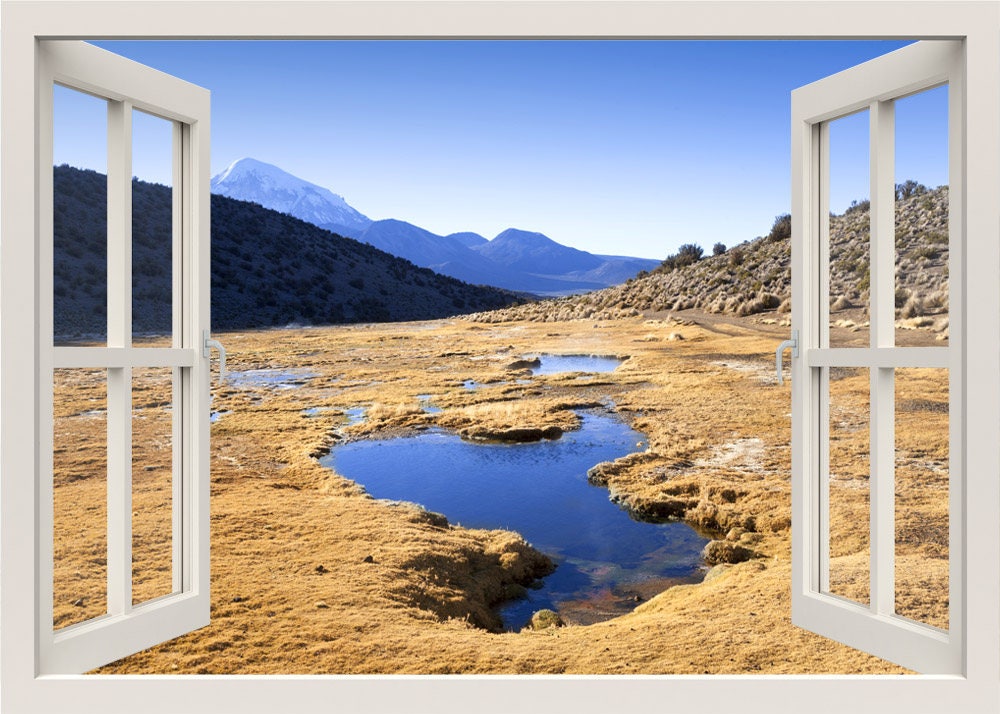 Mountains Wall Decal, Landscape Nature Wall Decal, 3d Window Wall Decal, Window Frame, Window View Home Decal, Wall Mural, Living Room Decor