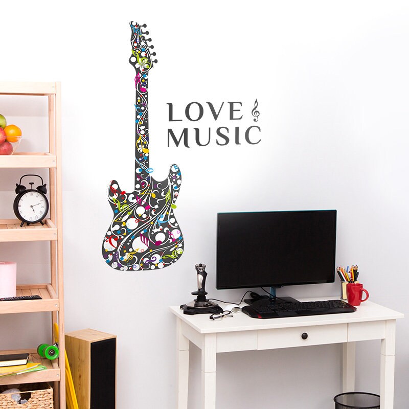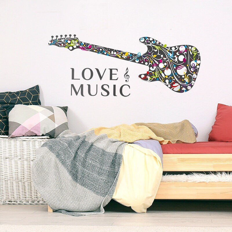 Music Wall Decal, Guitar Wall Sticker, Guitar Wall Decor for Teenage Room, Music Vinyl Lettering, Rock Band Wall Decal, Music Quote Decal