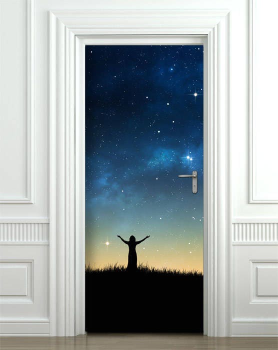 Sky at Night Stars Wall Door Decal, Stars Wall Decal, Sky Door Sticker, Sky Wall Mural, Tree Door Wallpaper, Home Design Sticker, Door Cover