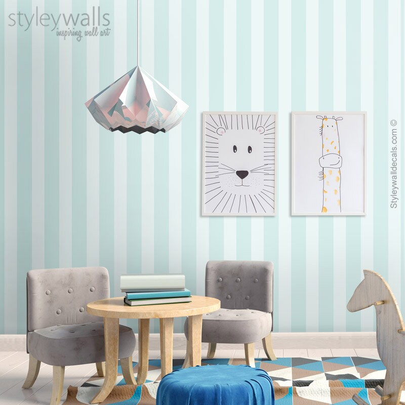 Stripes Wallpaper, Blue Striped Pattern Vertical Wallpaper, Repositionable Removable Fabric, Kids Room Decor, Peel and Stick, Self Adhesive
