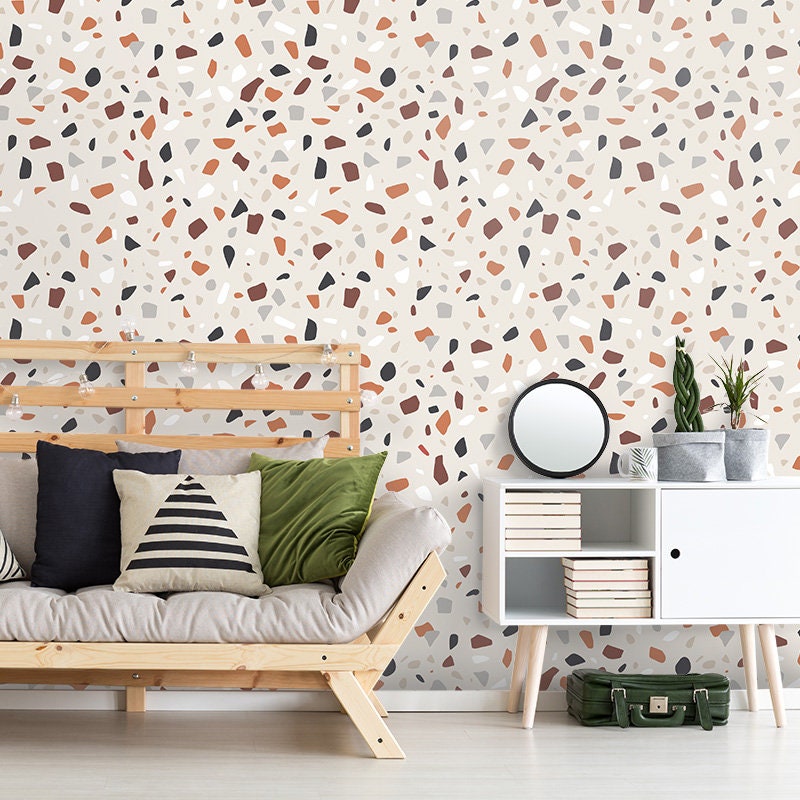 Terrazzo Wallpaper, Italian Terrazzo Pattern Wallpaper, Self Adhesive Modern Wallpaper, Repositionable Fabric Wallpaper