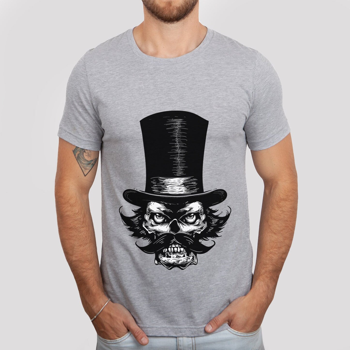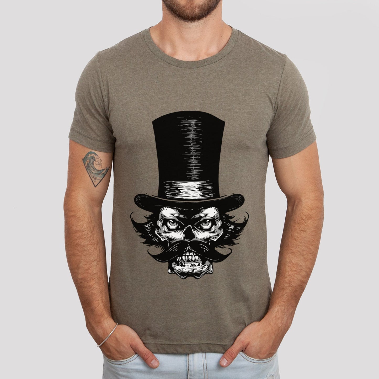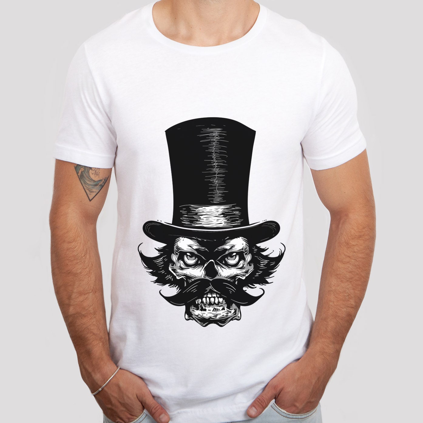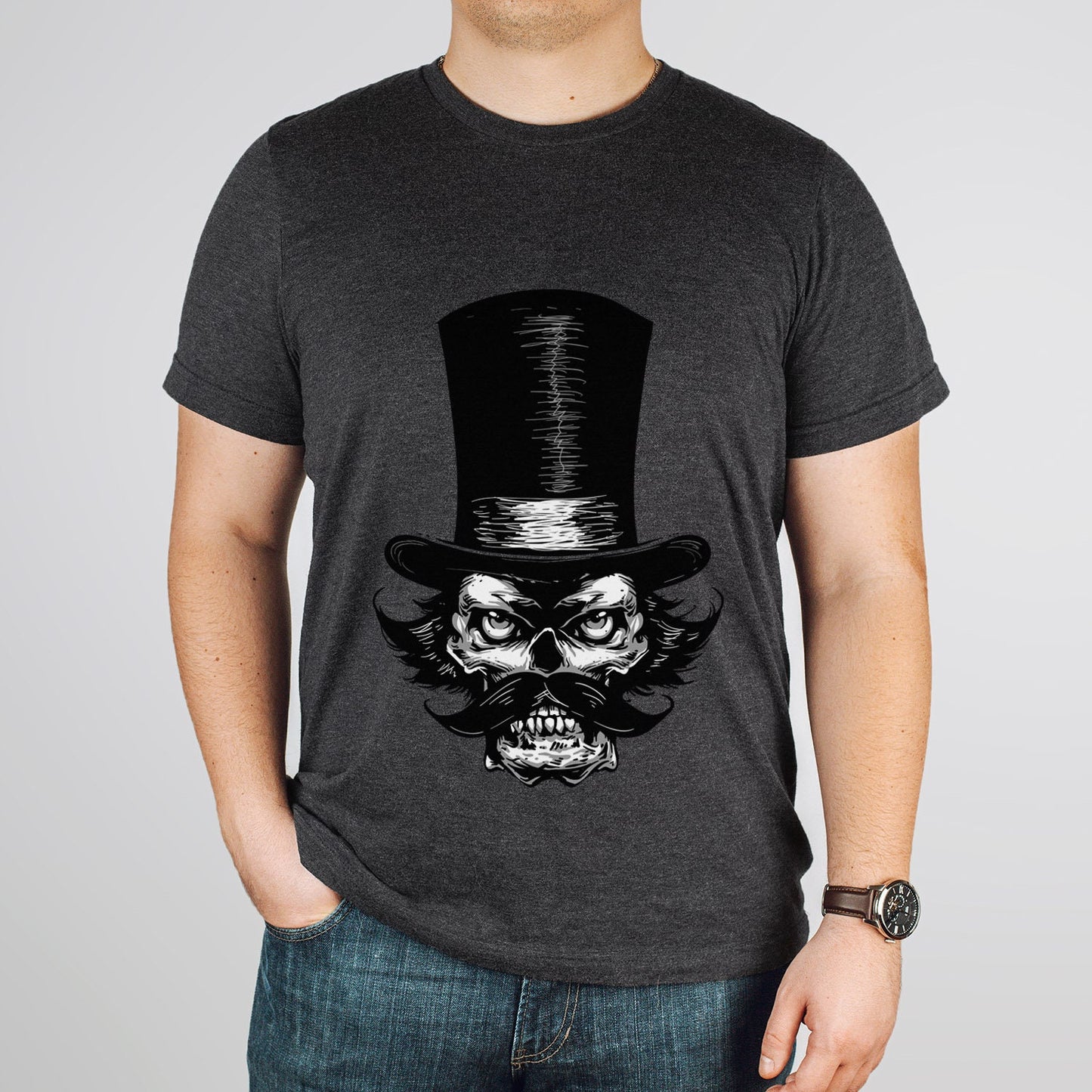 The Brawler T-shirt, Skull with a Mustache and Hat T-shirt, Skull with a Beard Shirt, Horror T-Shirt, Gift for Him