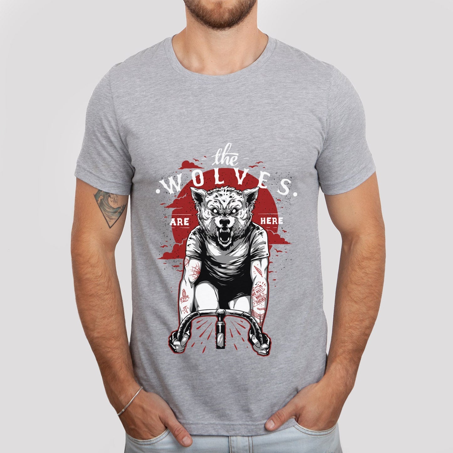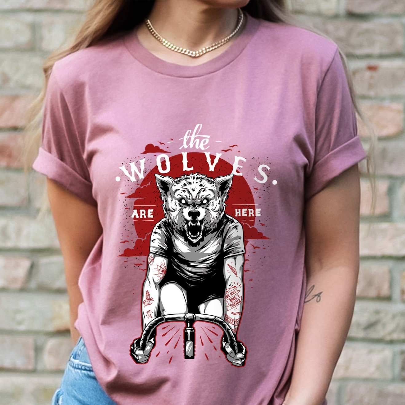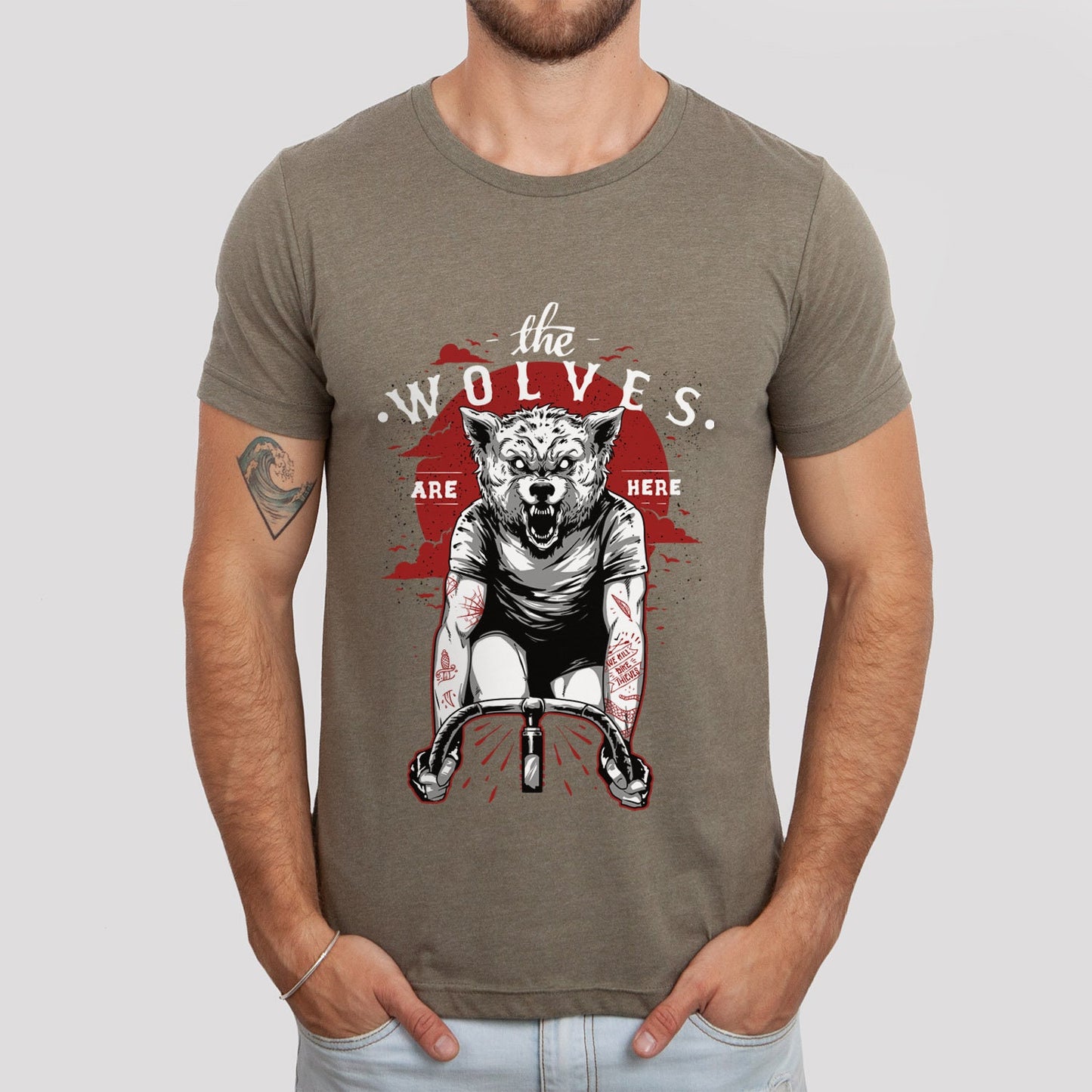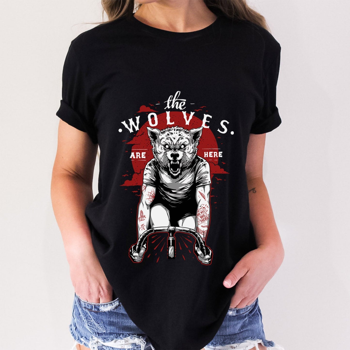The Wolves are Here T-shirt, T-shirt with Wolf, Horror Shirt, Scary Shirt, Wolf with Tattoos Riding a Bike, Gothic Shirt