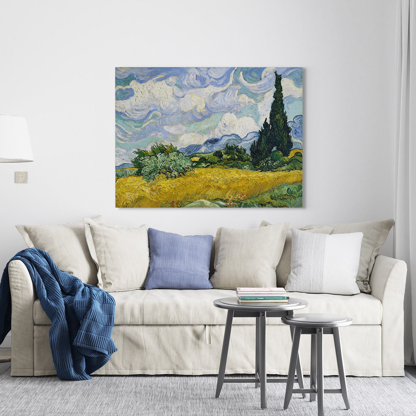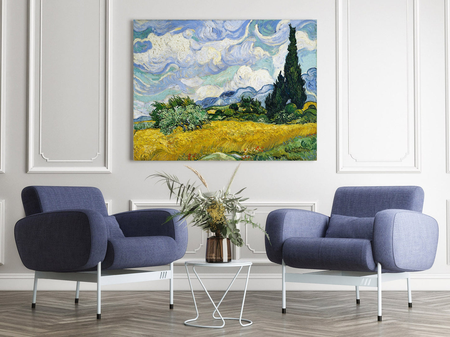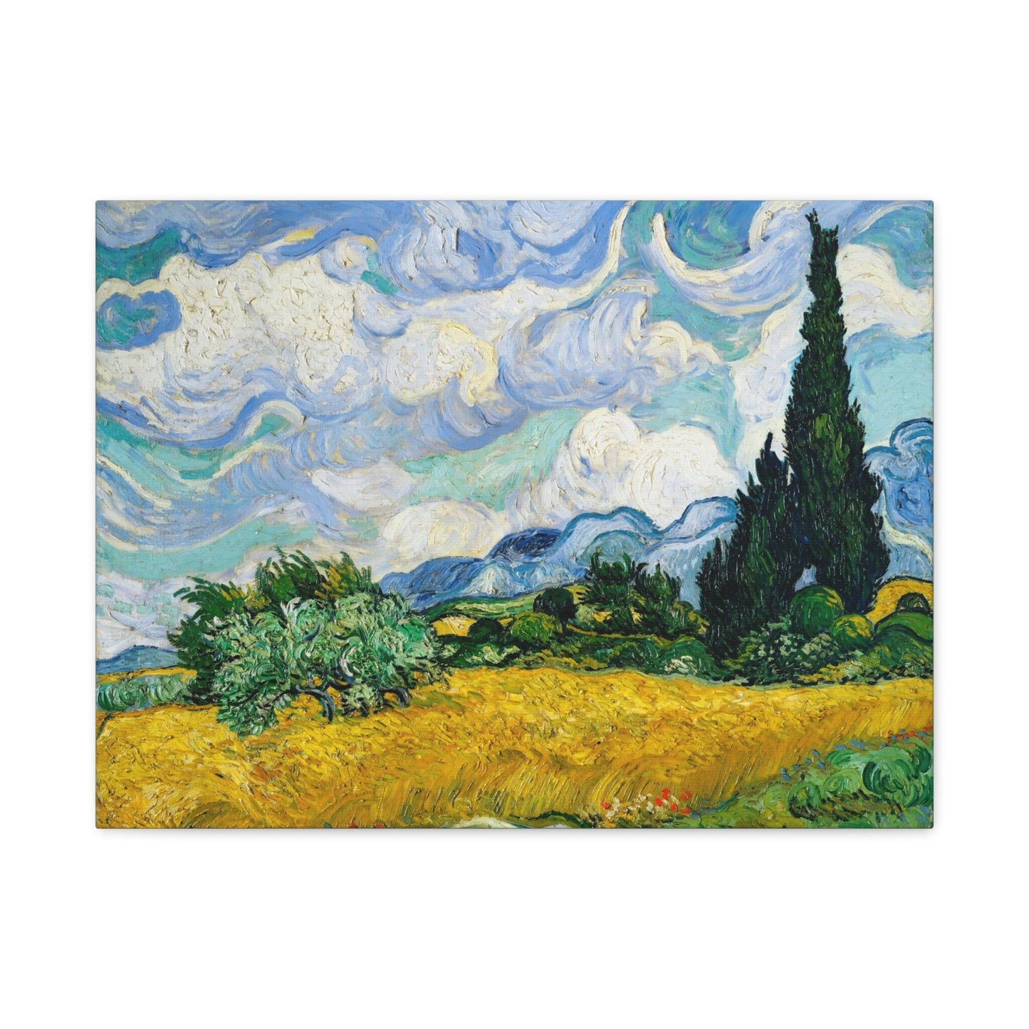 Vincent Van Gogh Wheat Field with Cypresses Stretched Canvas Wall Art, Van Gogh Art Canvas Reproduction Print, Modern Art Canvas Painting