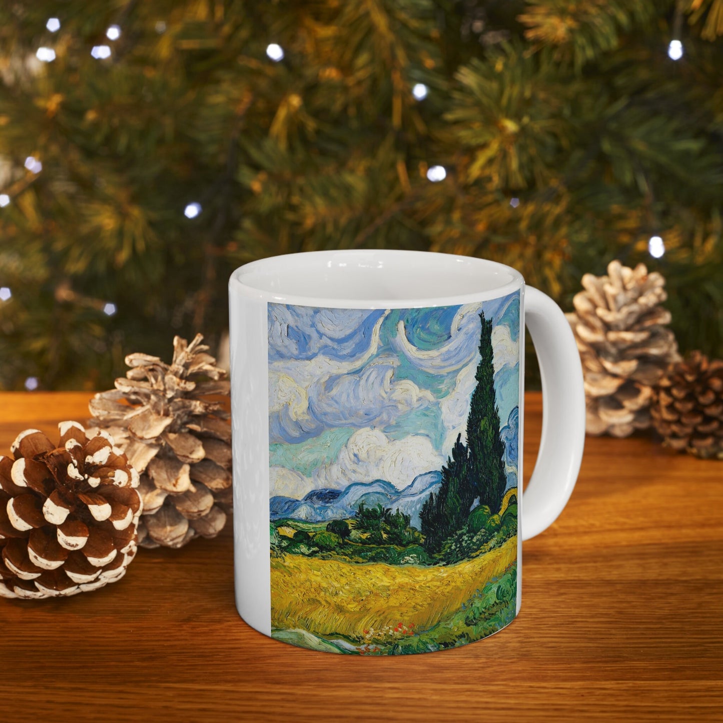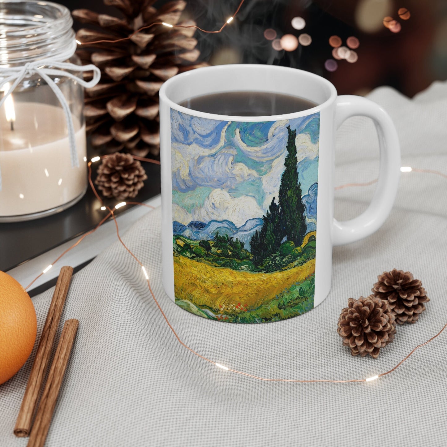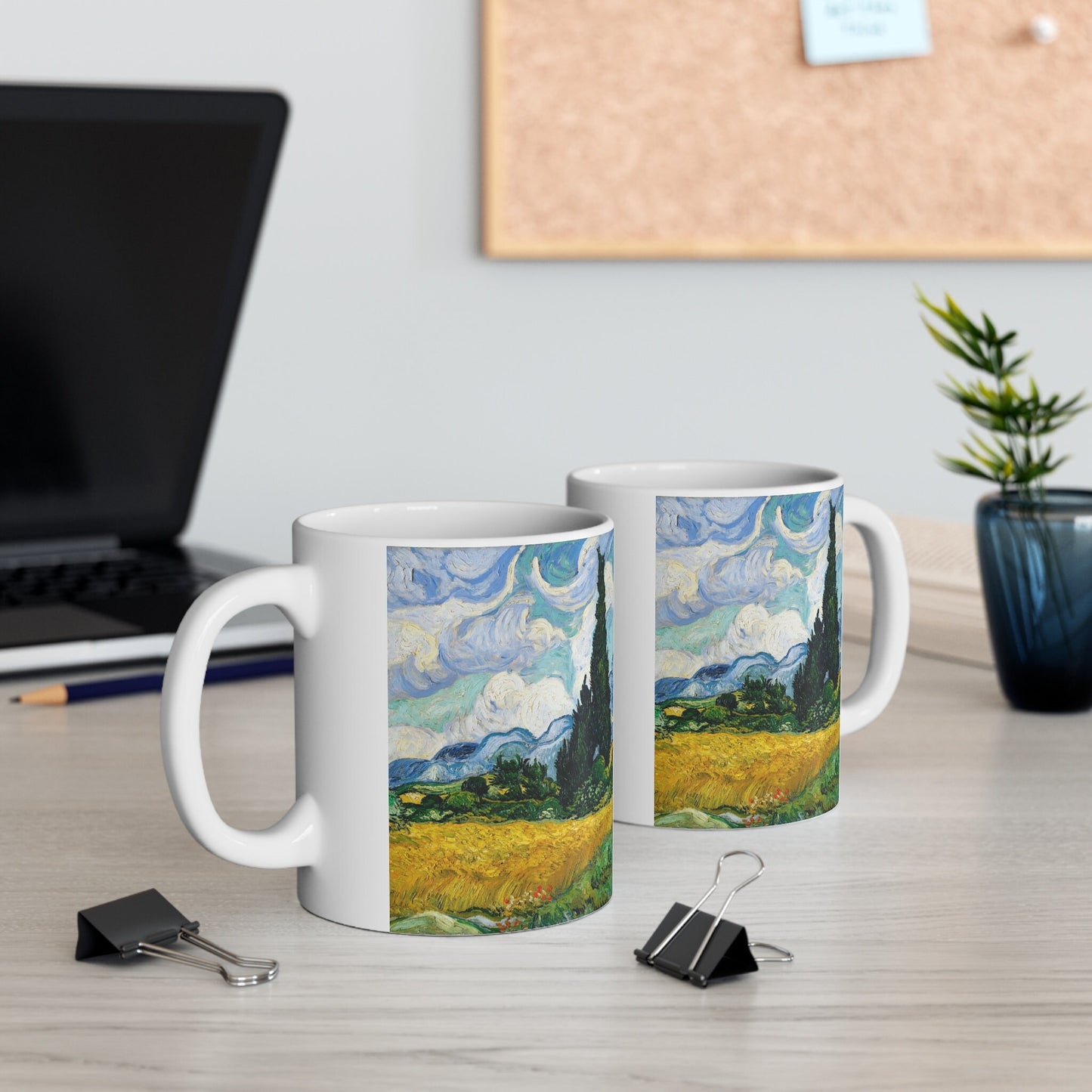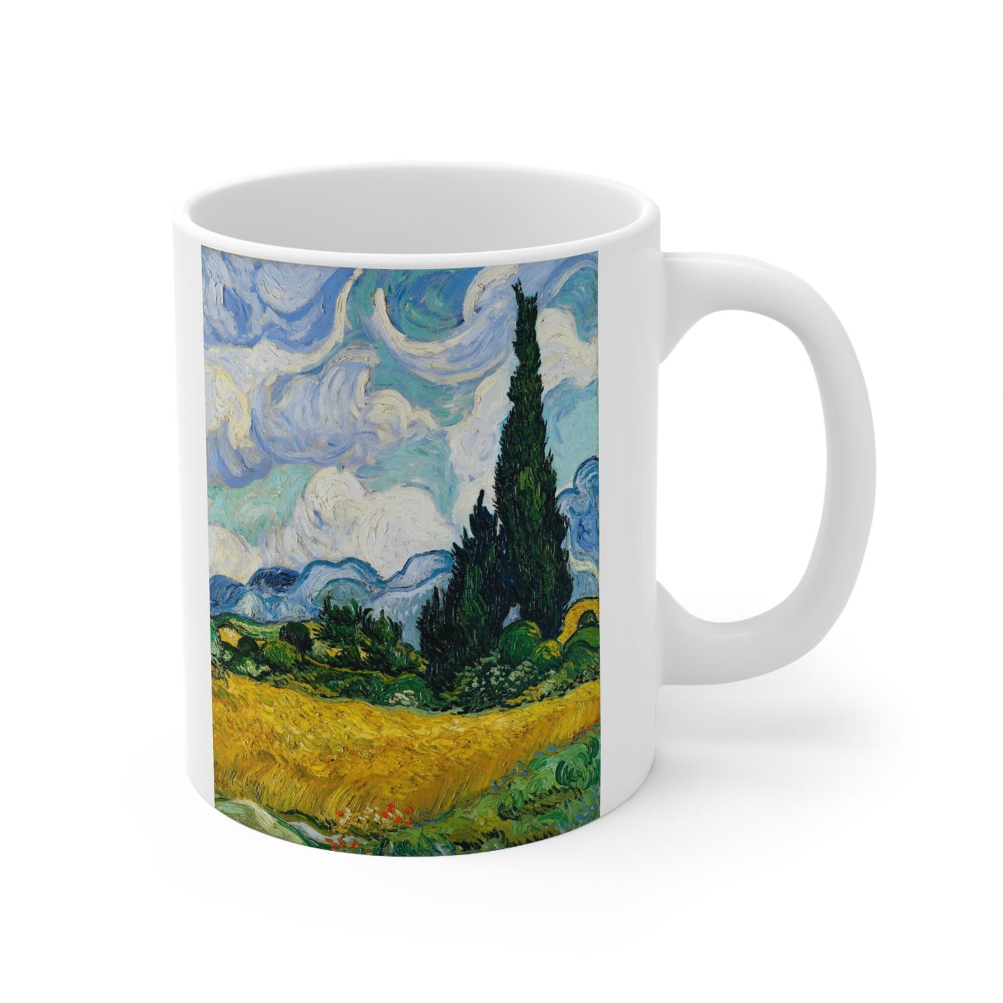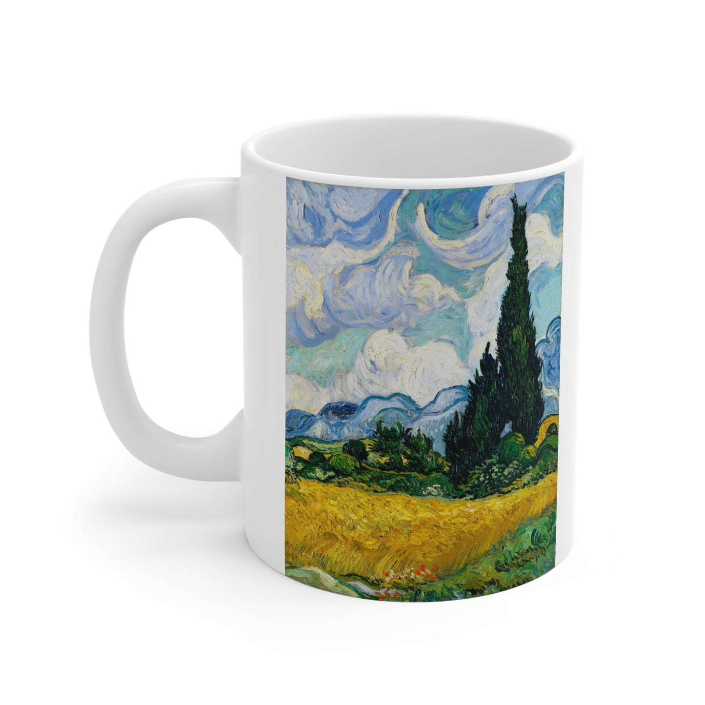 Vincent Van Gogh's Wheat Field with Cypresses Painting Mug, Fine Art Mug Cup, Birthday Gift Mug, White Ceramic Coffee Mug 11oz