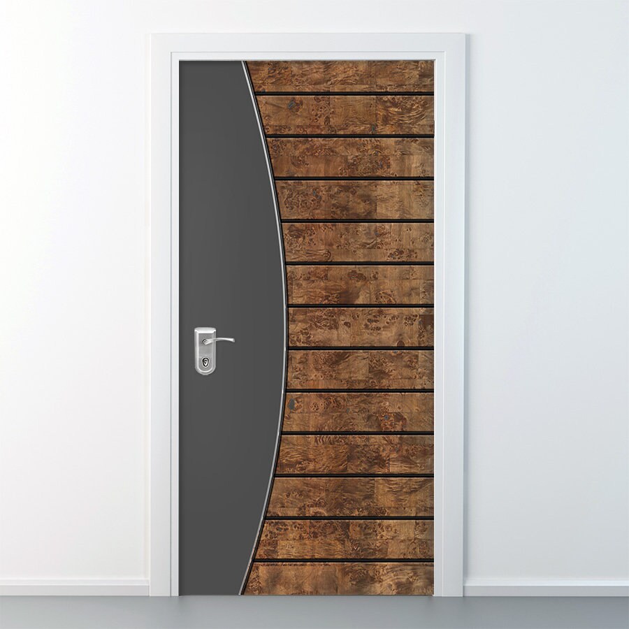 Wood and Grey Door Mural, Door Sticker, WOOD 104, Wood Door Decal, Entrance Door Mural, Room Door Sticker, Door Covering, Home Design